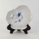Beskrivelse: Skål i hvidt kongeligt porcelæn med motiv af en frø på en åkande og musselmalet dekoration
