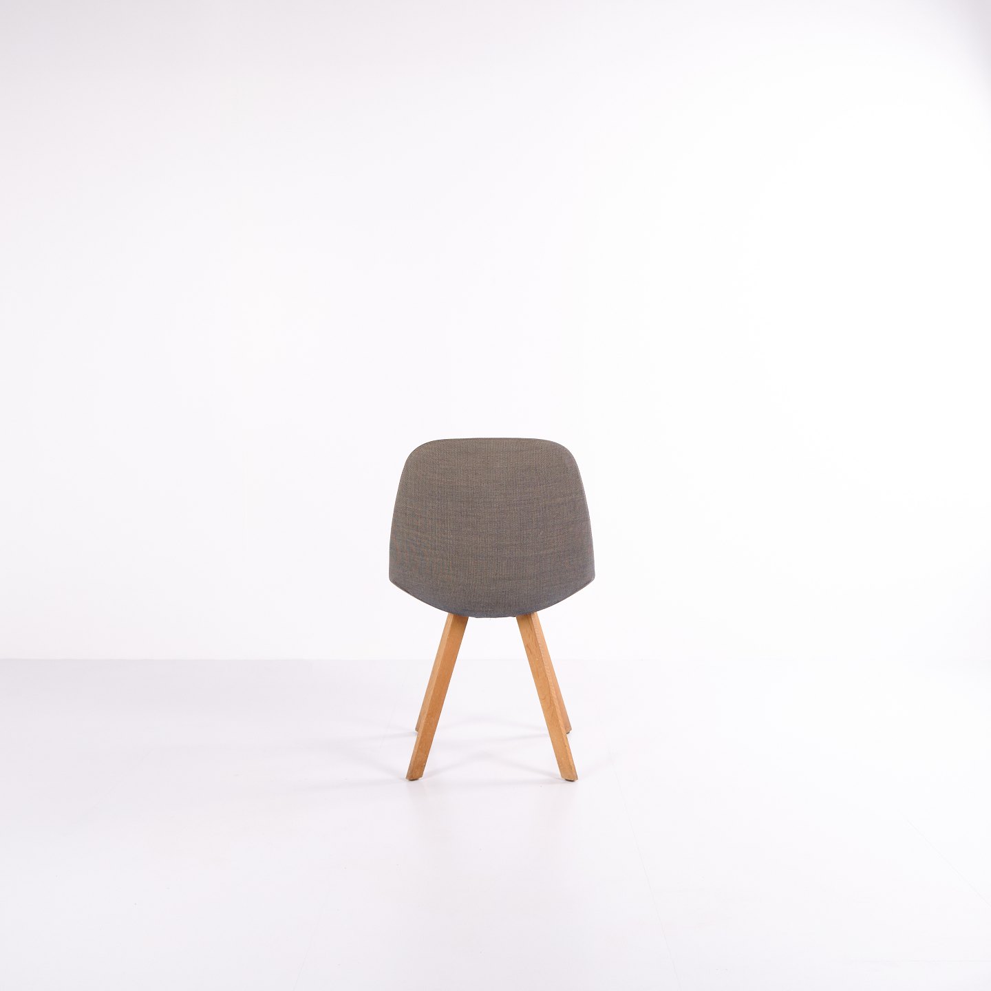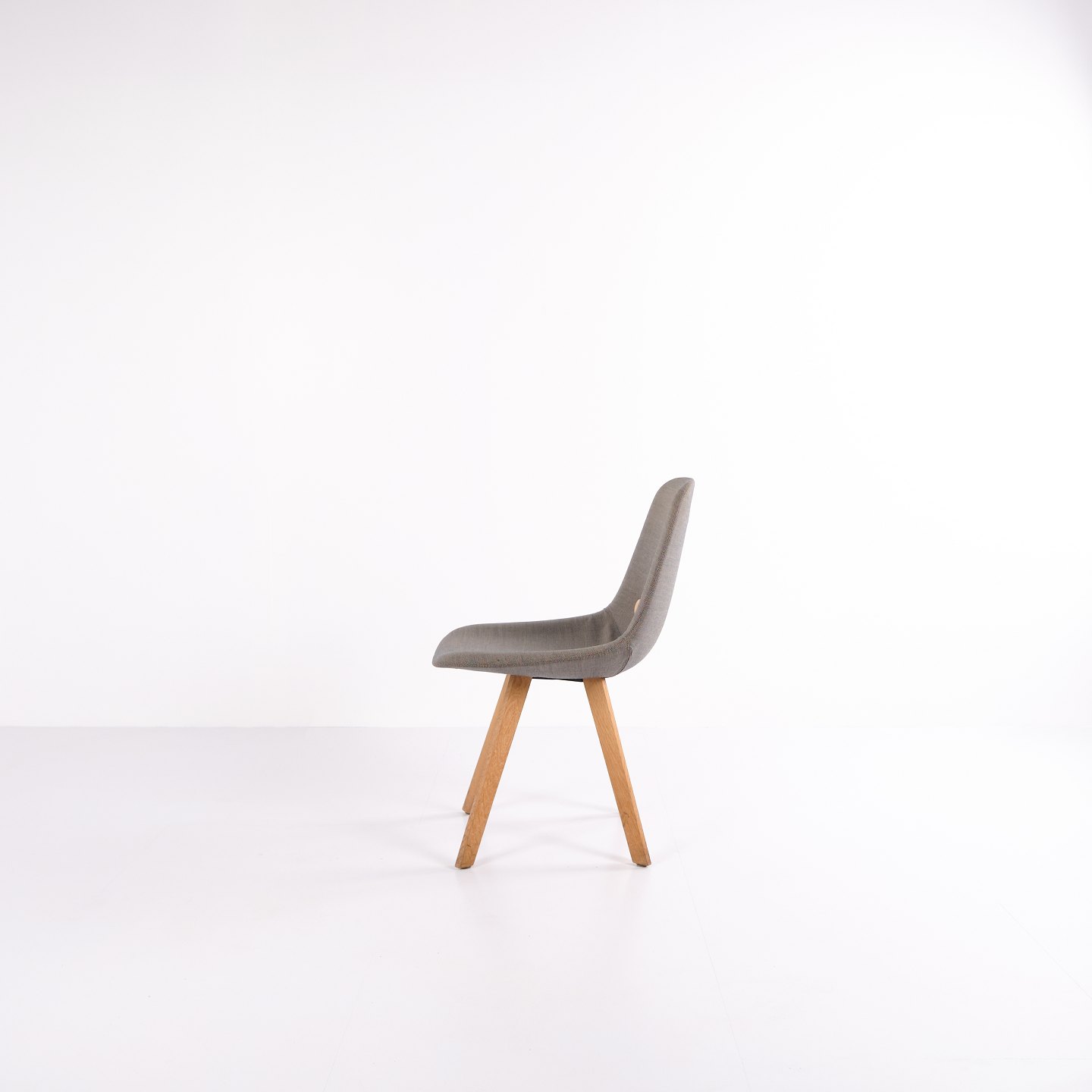Beskrivelse: Eyes Wood stol fra Erik Jørgensen, udført med mellemgrå polstring og ben i massivt træ. En moderne spisebordsstol med god siddekomfort og høj materialekvalitet.