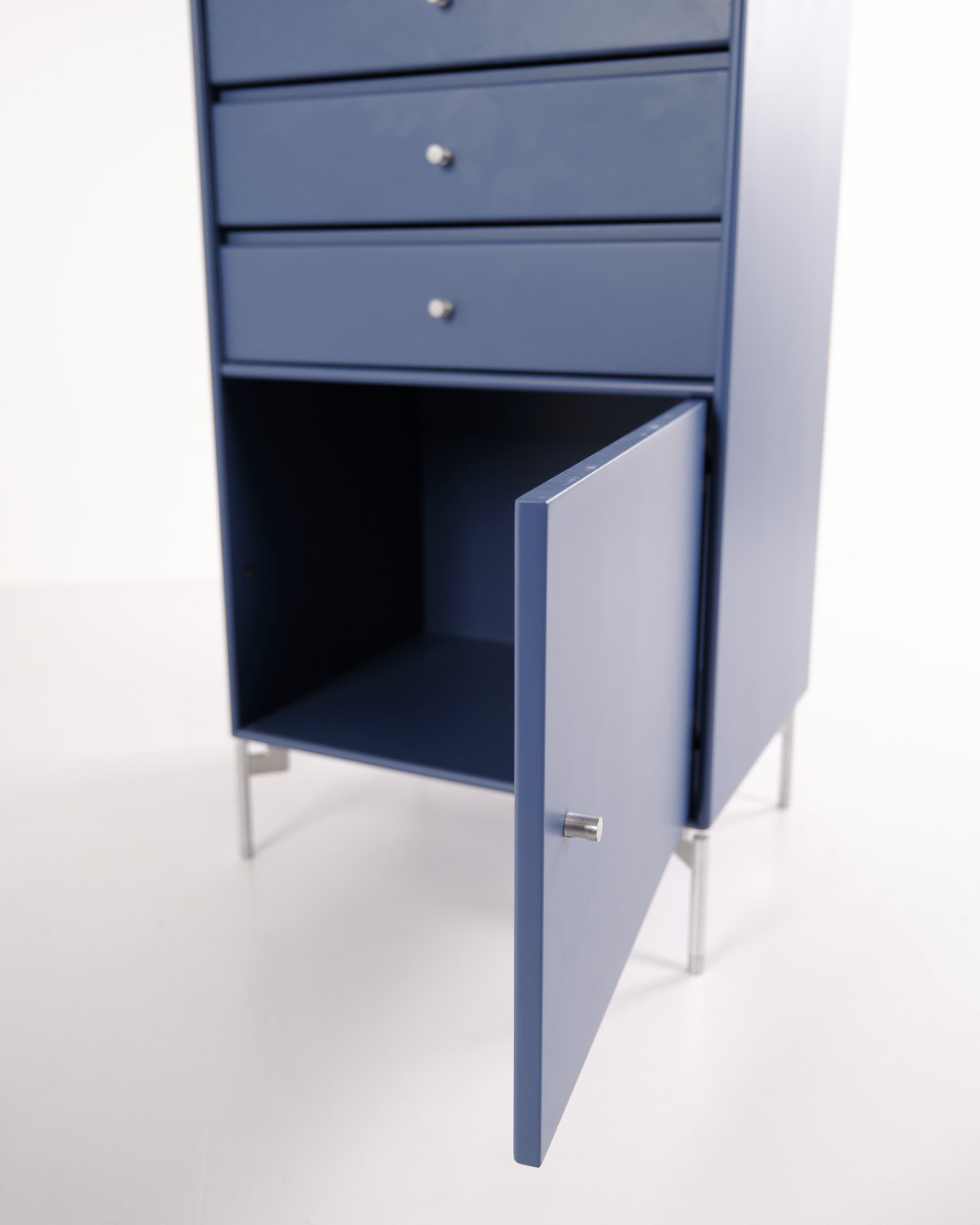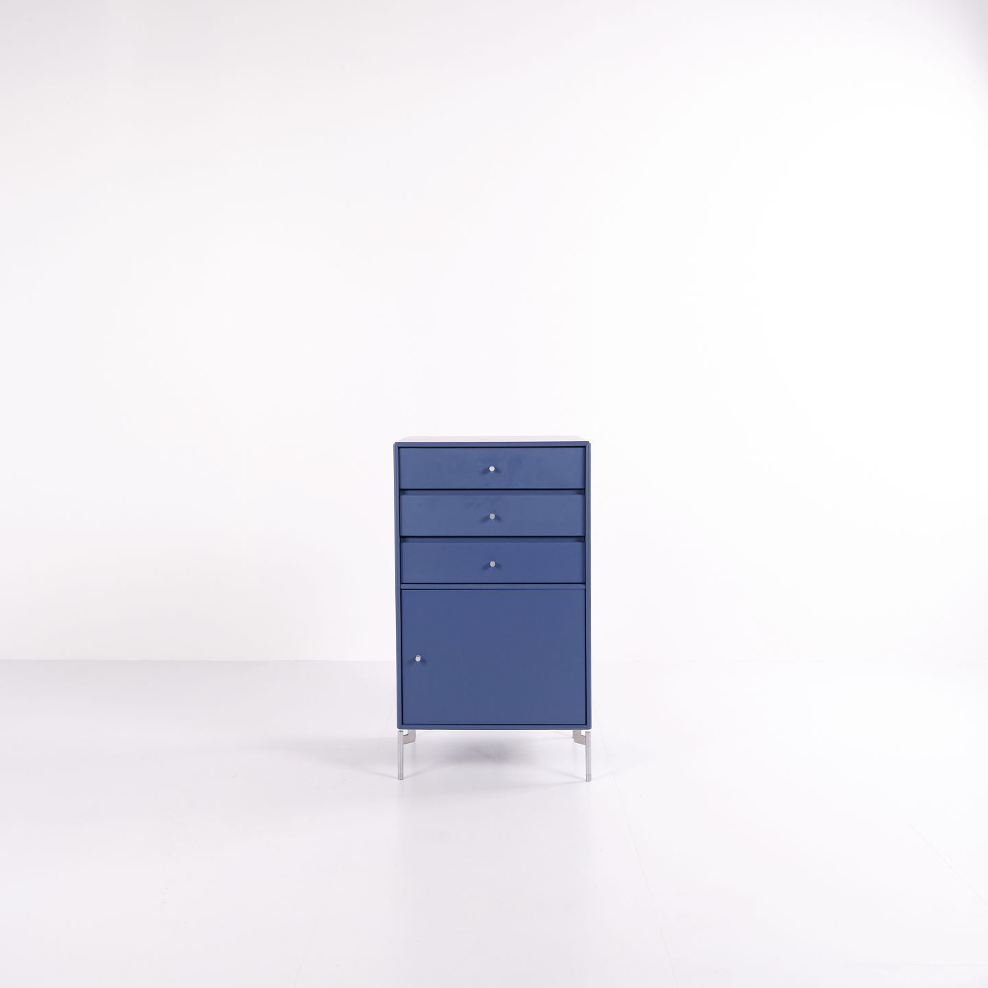 Skab / arkivskab – Montana – Blå – Krom ben – 3 skuffer & 1 låge