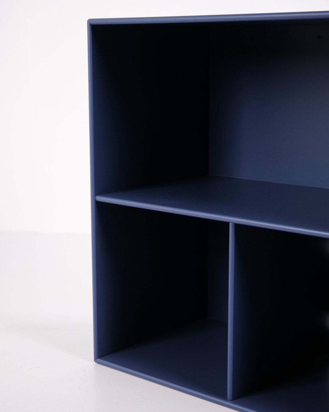 Beskrivelse: Montana reol i blå. Udstyret med tre åbne hylder, ideel til opbevaring eller udstilling i stue, kontor eller entré. Klassisk Montana-modul med enkel opbygning og høj funktionalitet.