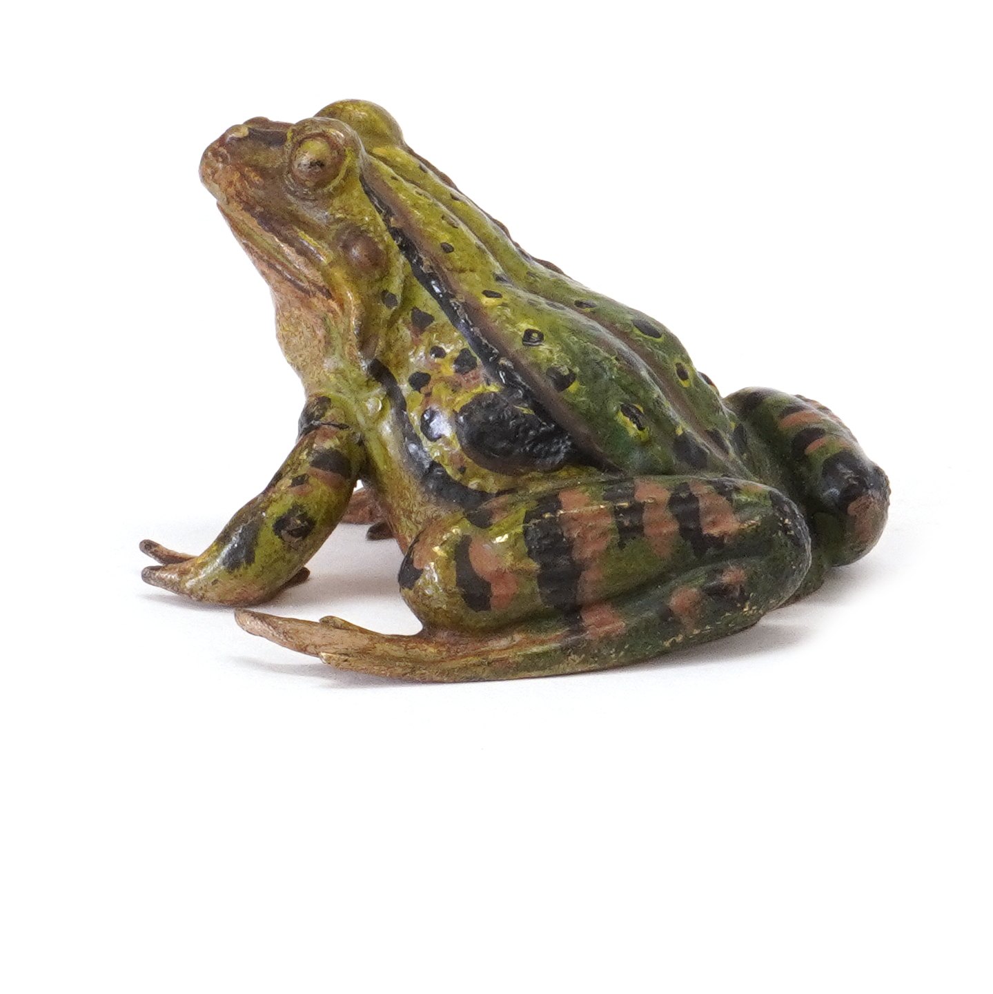 Beskrivelse: Polykrom dekoreret wiener bronze i form af en frø