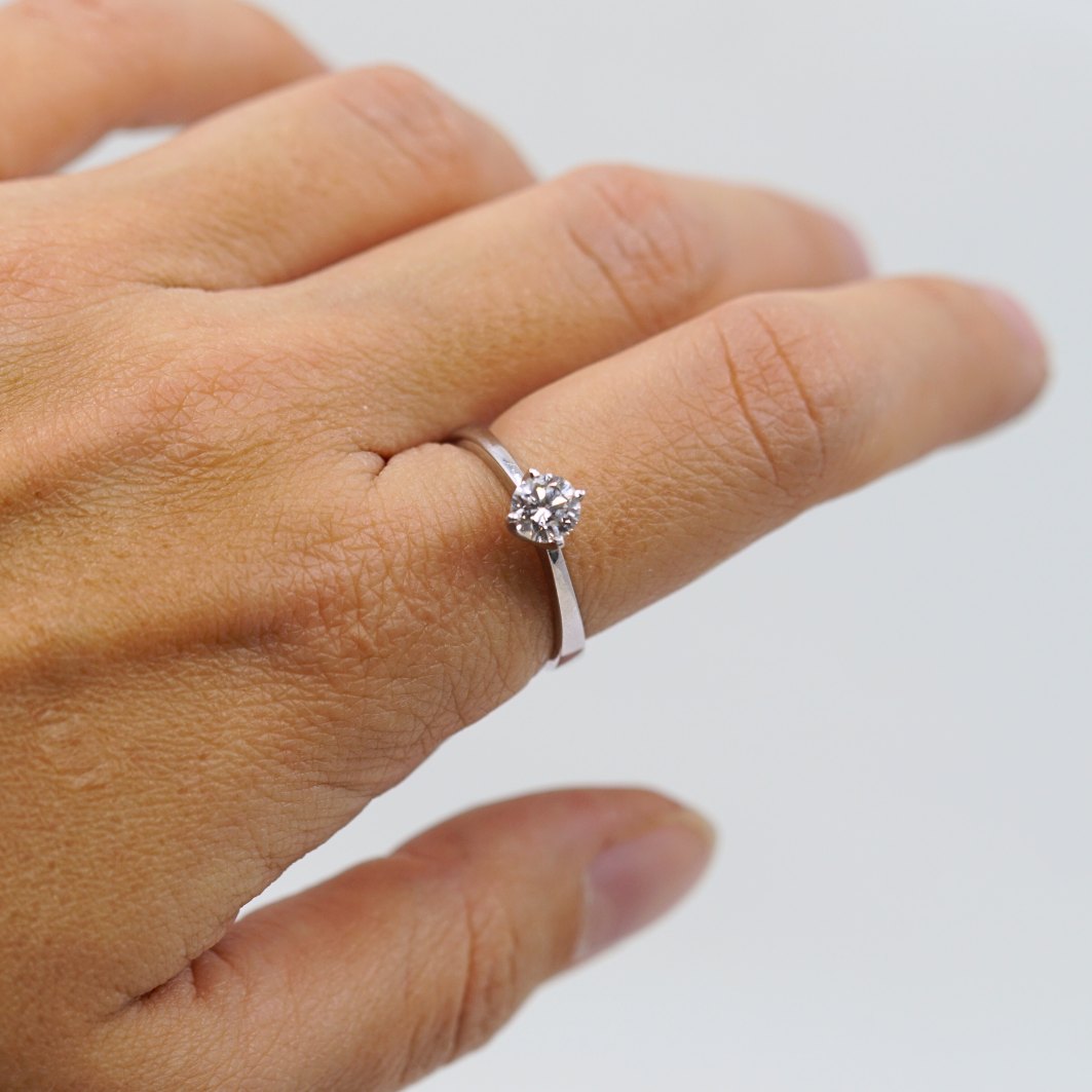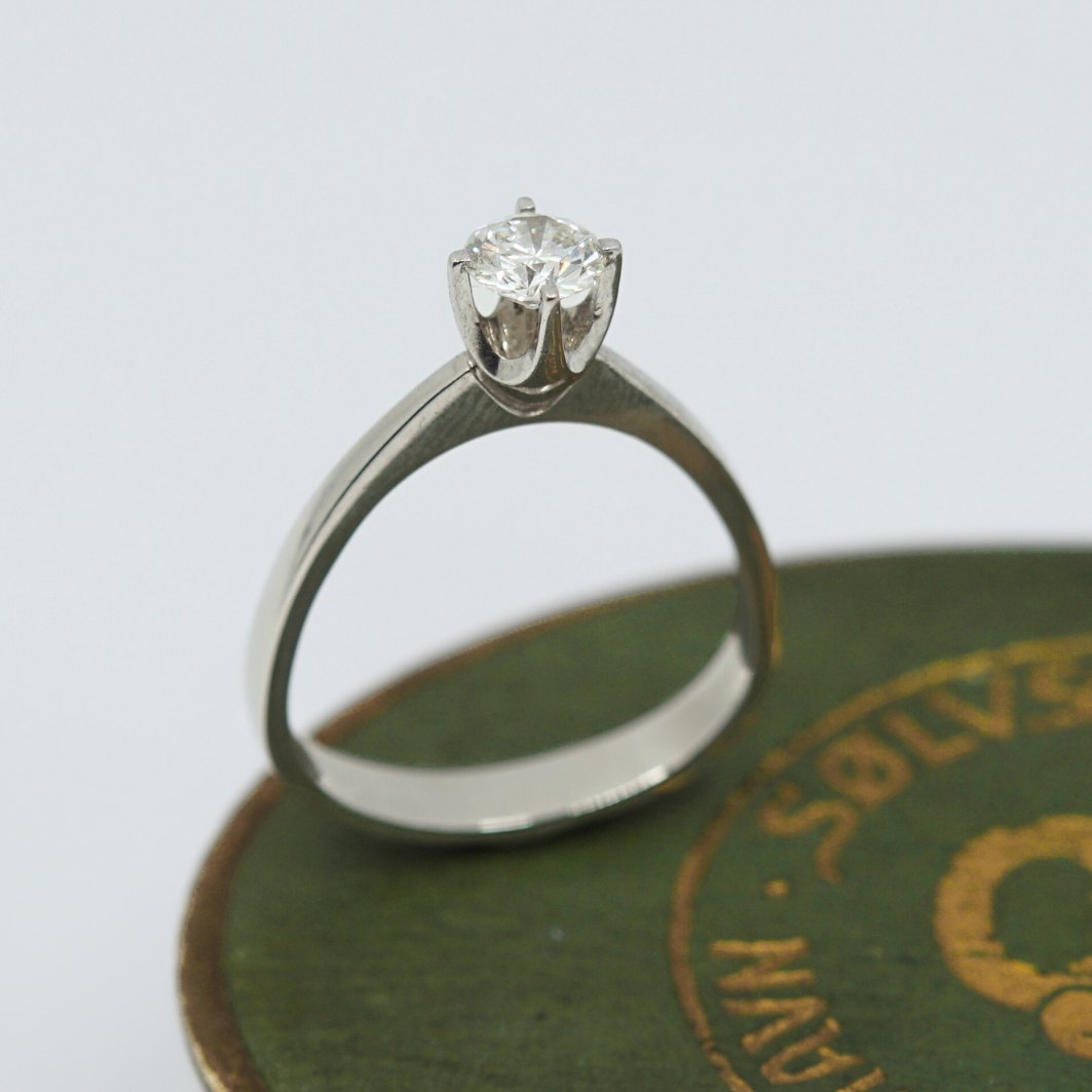 Beskrivelse: Georg Jensen; Diamantring i 18 kt. hvidguld. Diamant 0.55 ct. Top Wesselton, VVS. Ring str. 55-56.