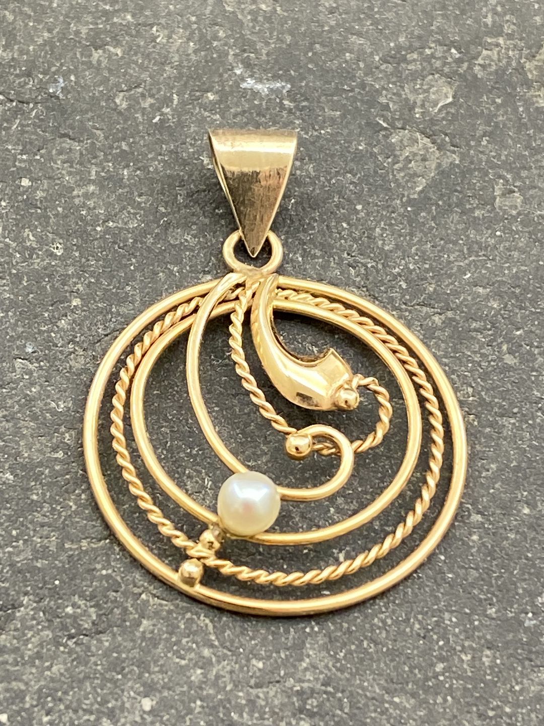 : 14 karat guld vedhæng D.2,6 cm. med perle fra guldsmed Jens Aagaard emne nr. 626584