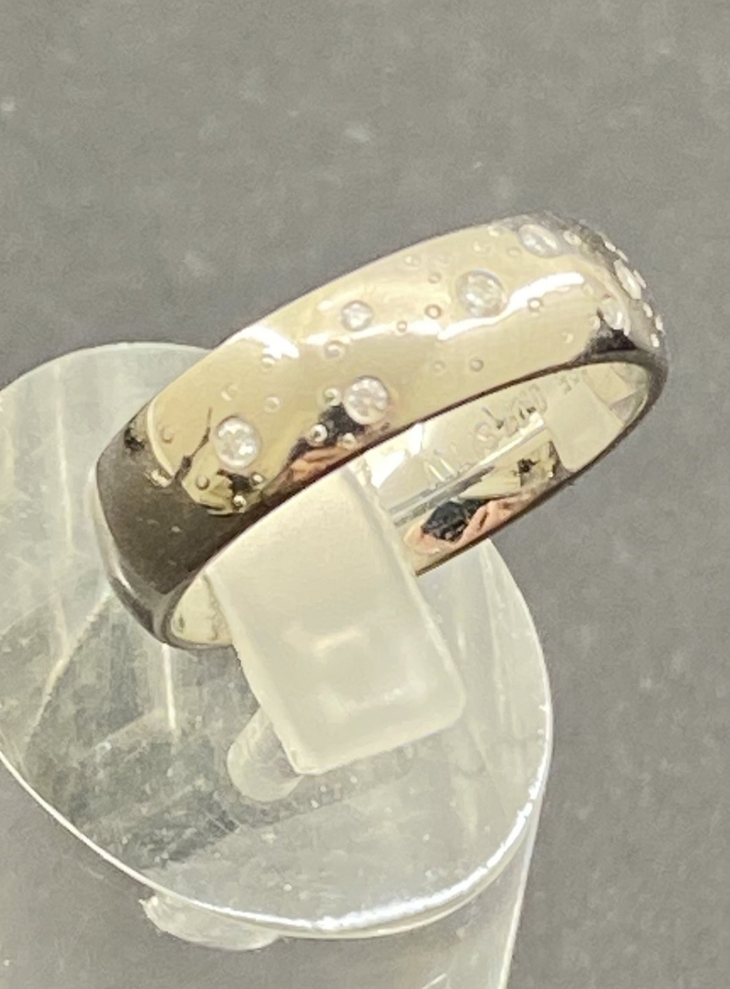 : 14 karat hvid guld ring størrelse 57 med 7 diamanter vægt 9,4 gram emne nr. 626602