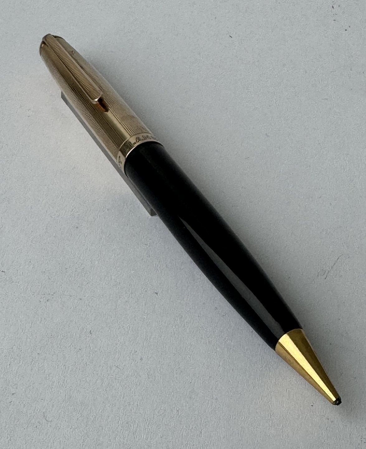 Description: Black Montblanc pencil with gold double top. In very good condition. Ready to be used.L. 12,4 cm