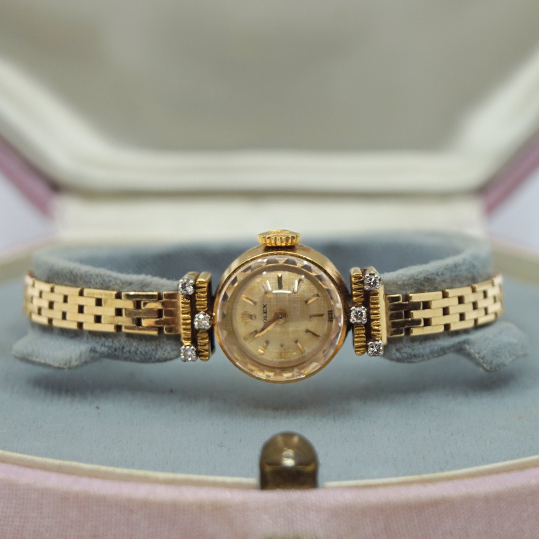 Rolex; Orchid watch in 18k gold, with six diamonds set in white gold. Ref. 988531. Wristchain in 14k gold. Clasp with 2 safety cathes.