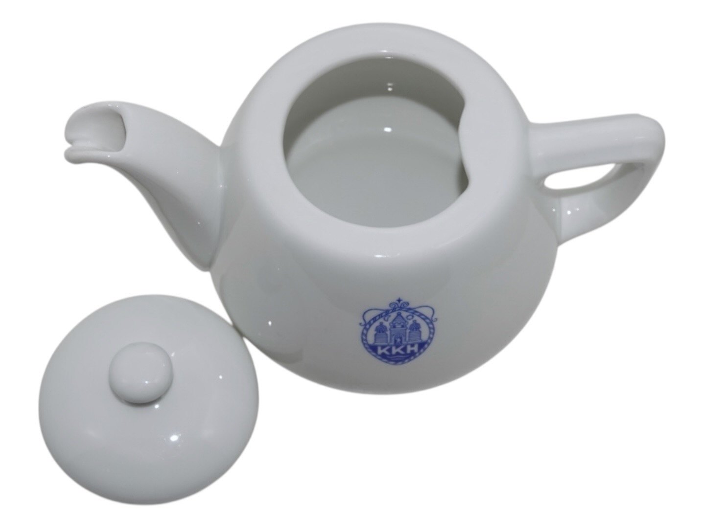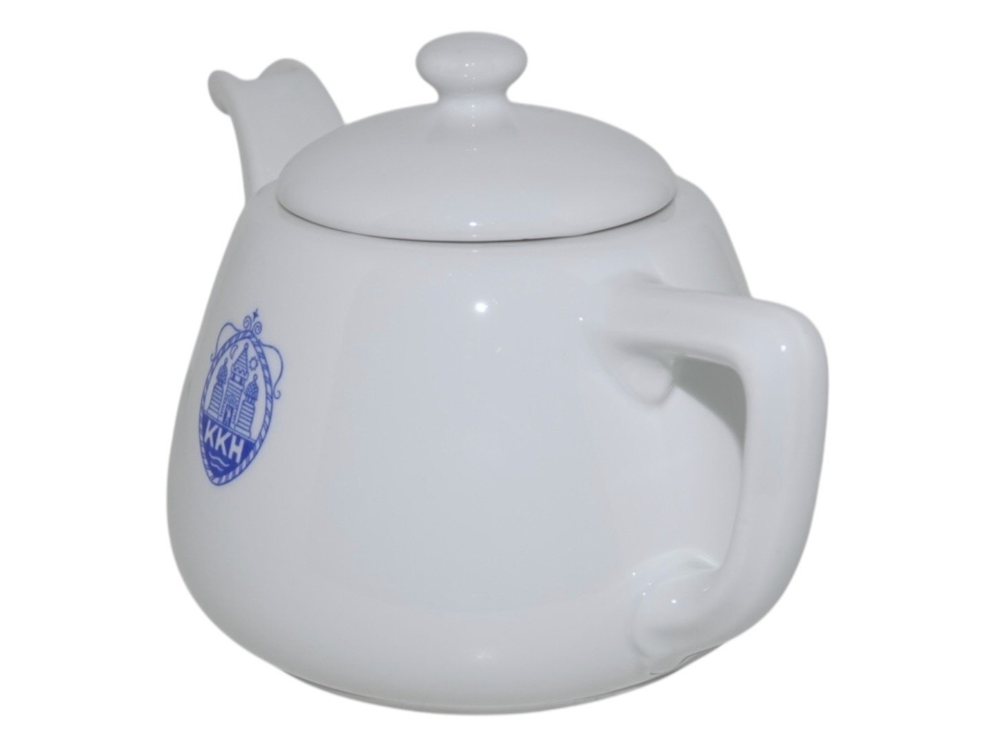 Lille hvid tekande i jernporcelæn med logo fra Københavns Kommune Hospital