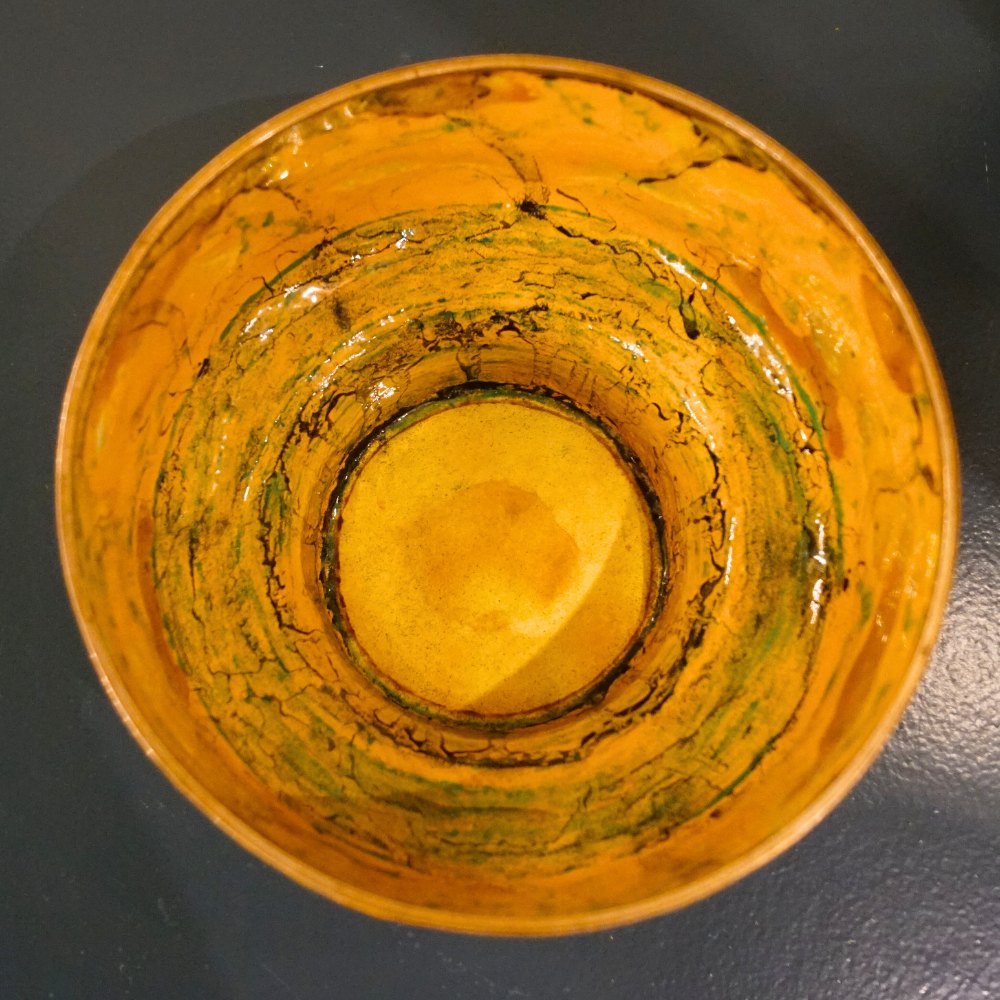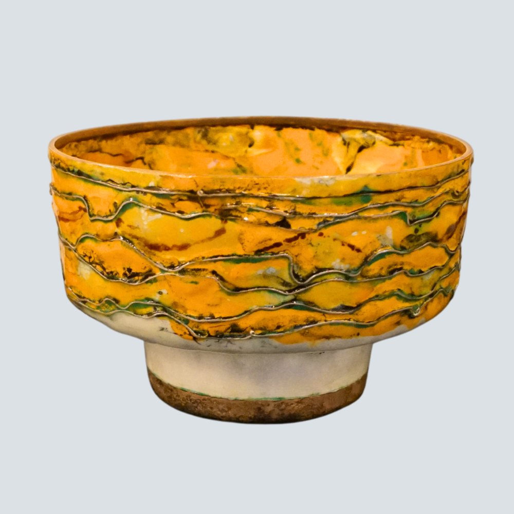 Inger Hanmann for Anton Michelsen; Skål i sterling sølv prydet med gul emalje