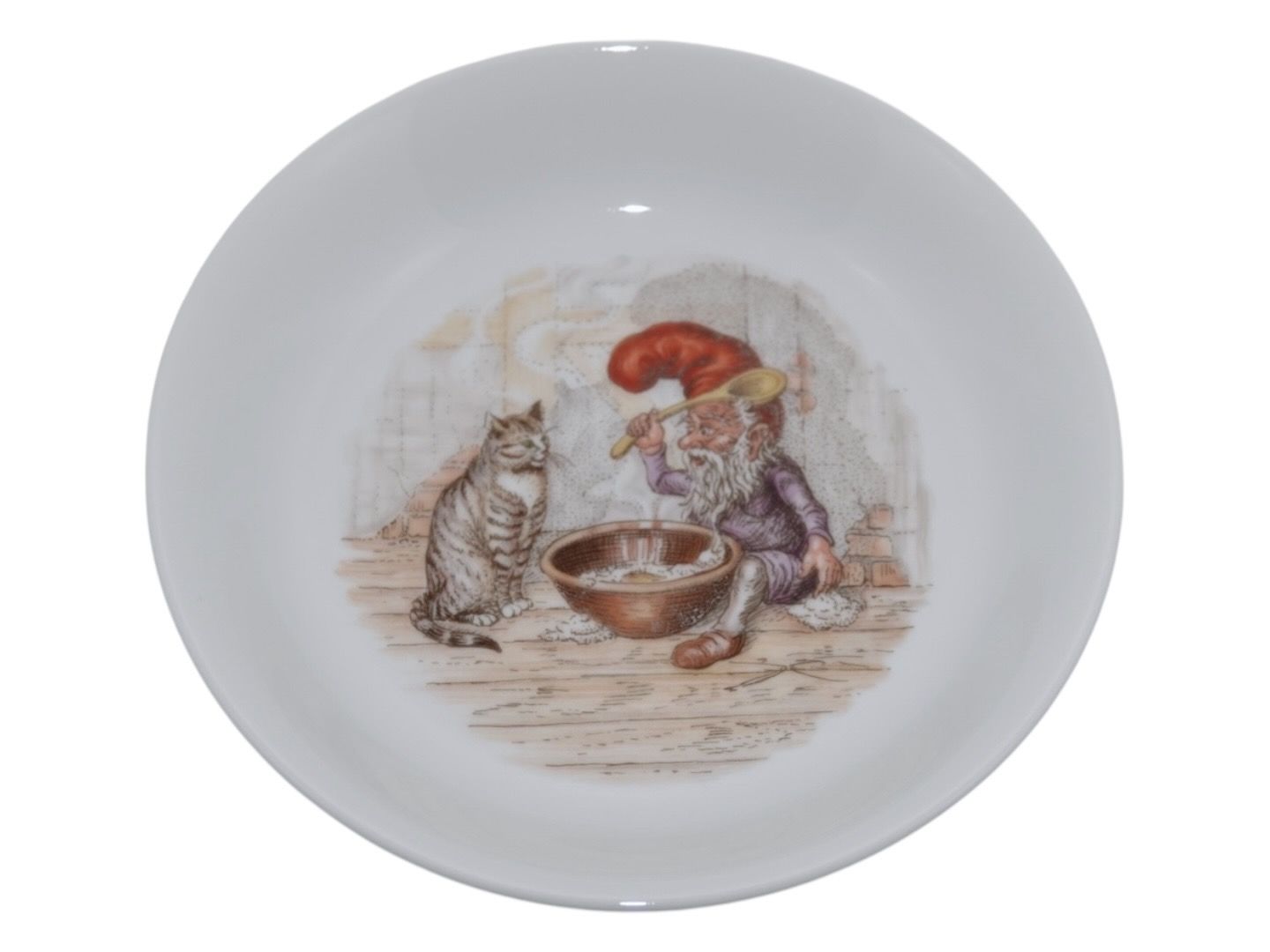 Beskrivelse: Royal Copenhagen julestel, asiet med julenisse og kat.