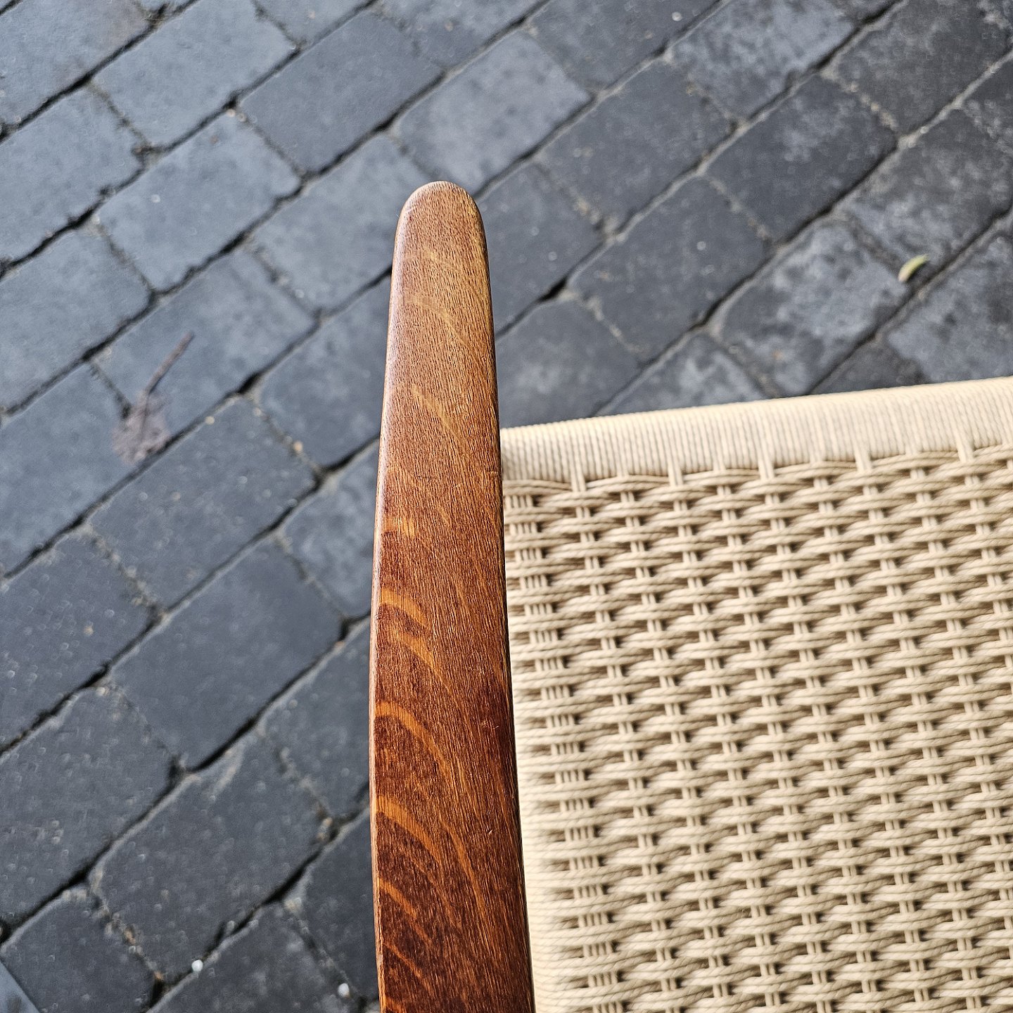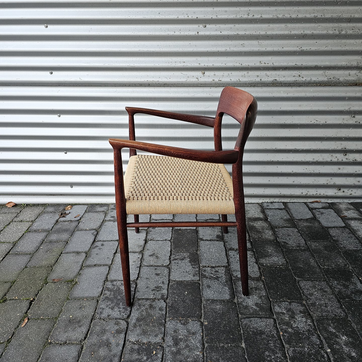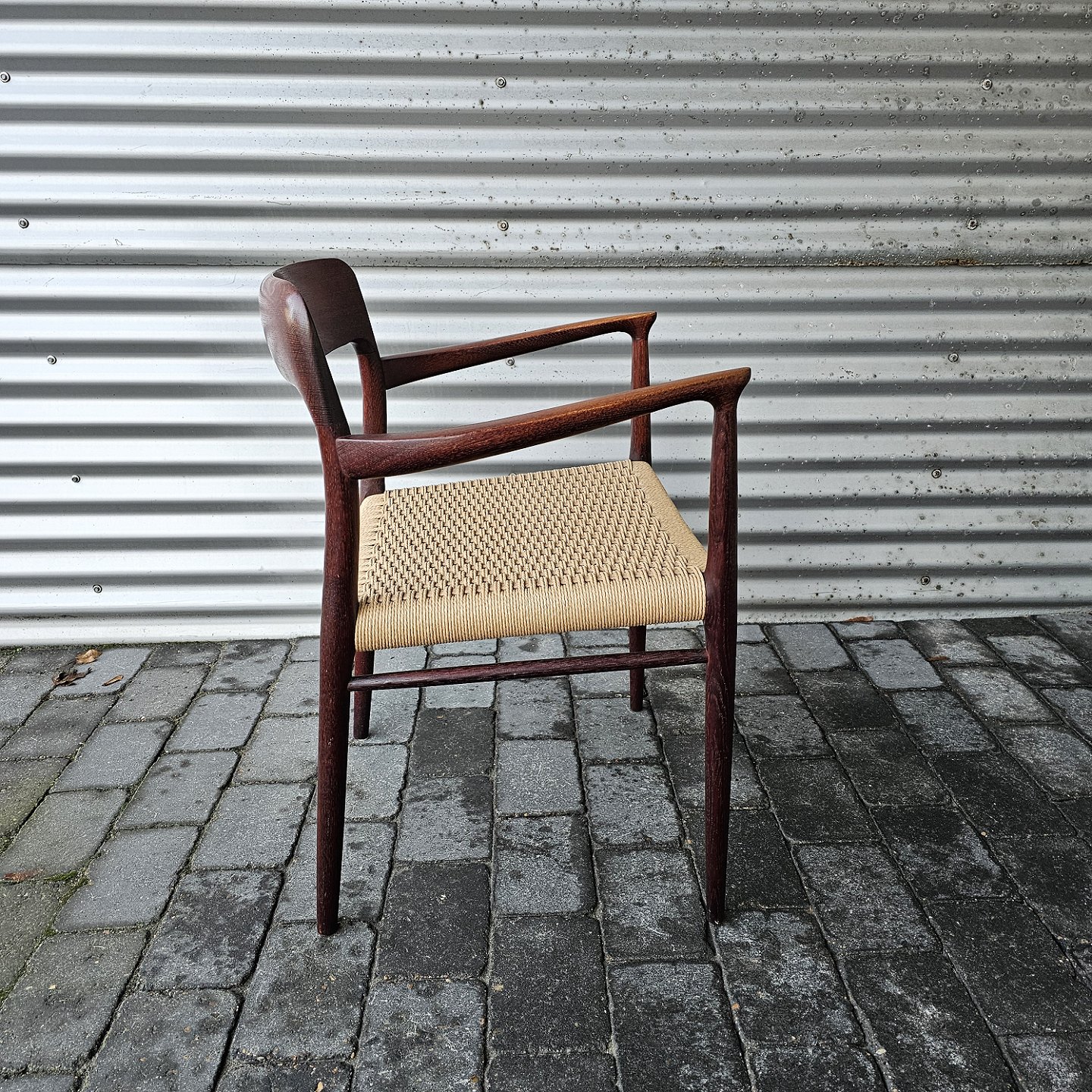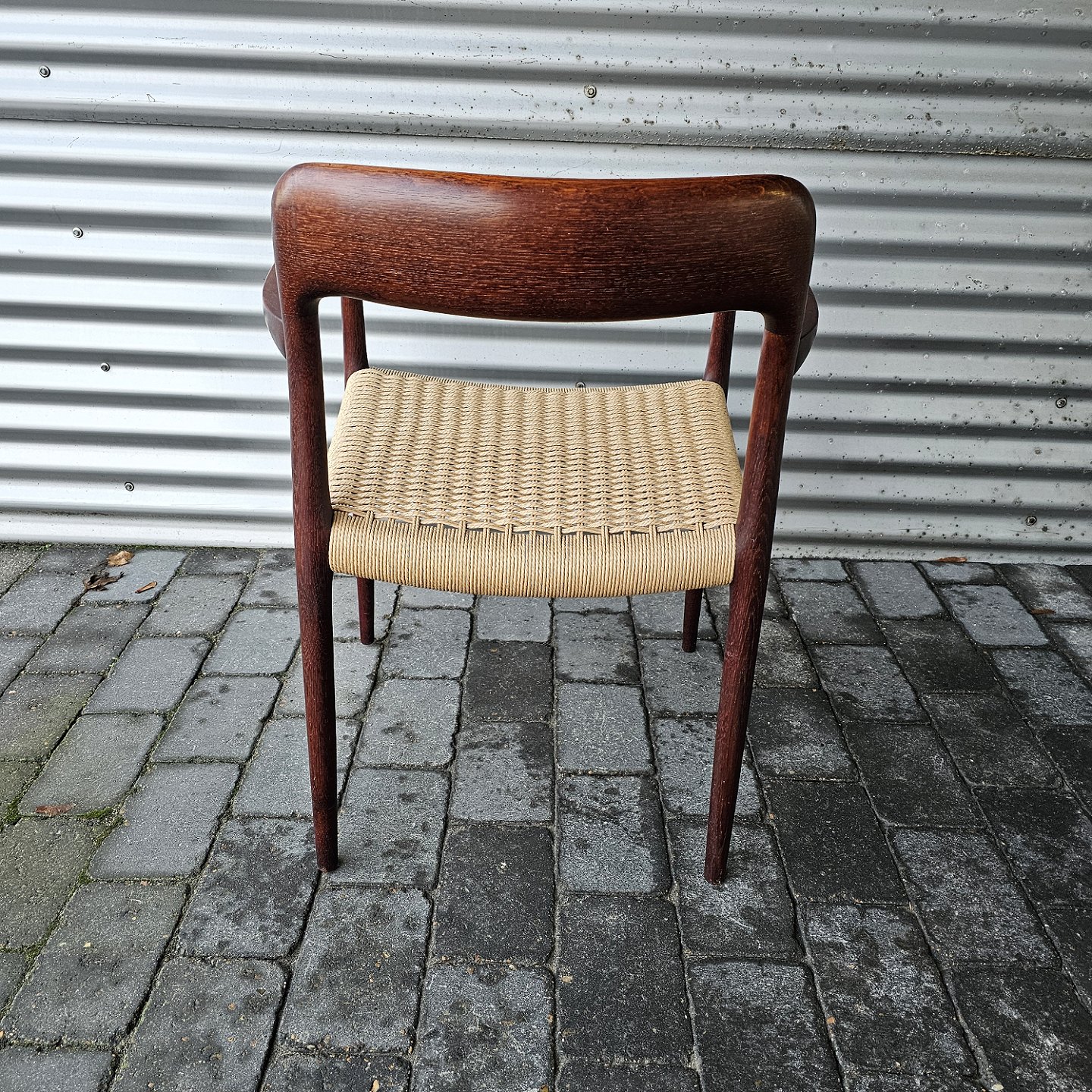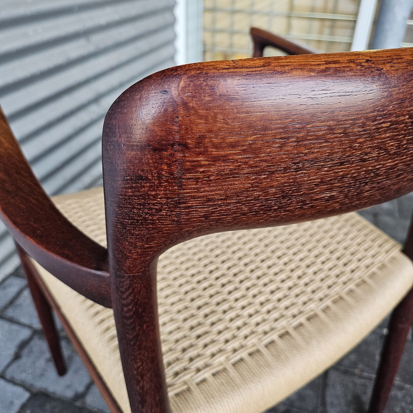 Beskrivelse: Niels Ole Møller stol i teak med flettet sæde