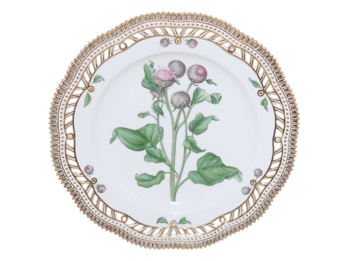 Beskrivelse: Royal Copenhagen Flora Danica, middagstallerken med gennembrudt kant.