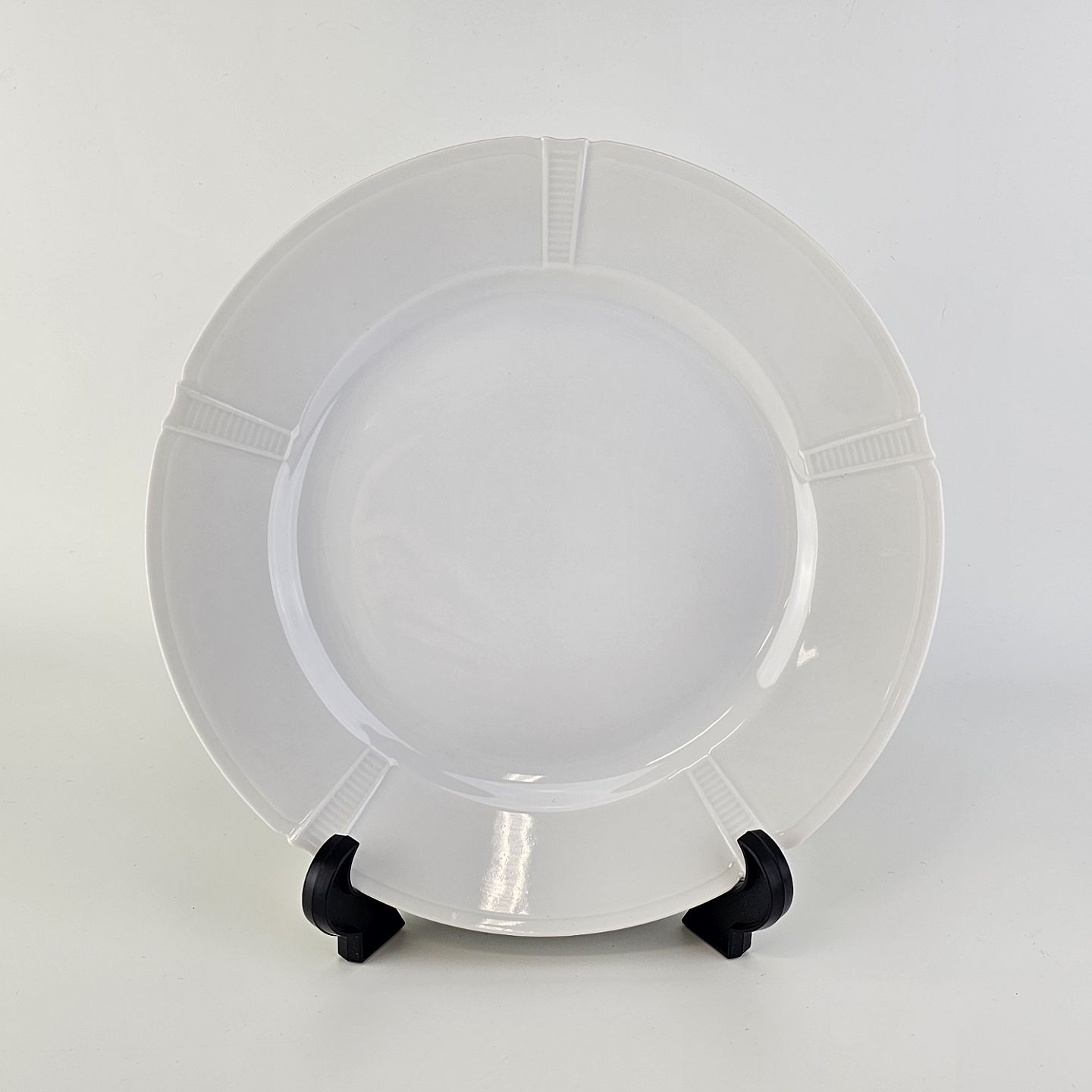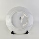 Beskrivelse: Flad frokosttallerken i hvidt porcelæn fra stellet Rosenborg
