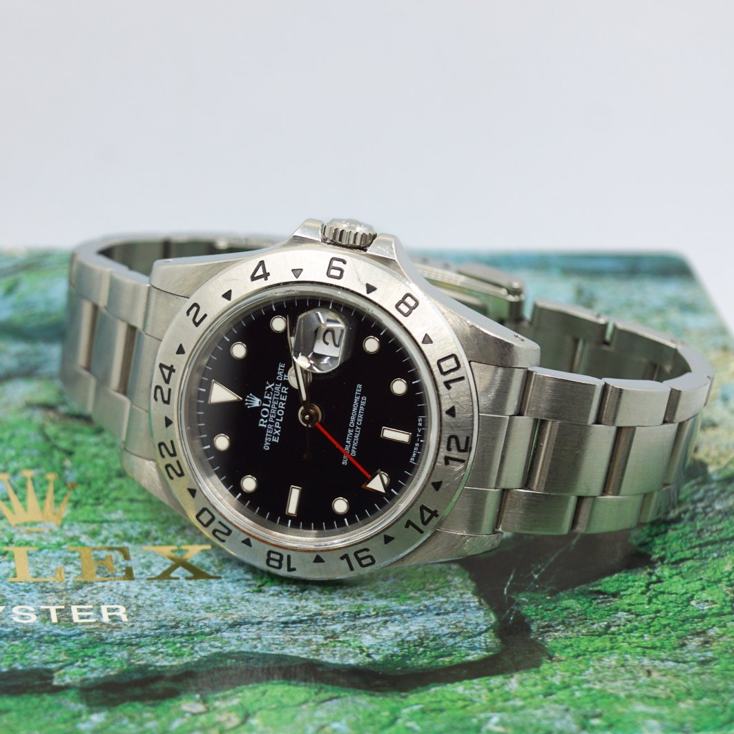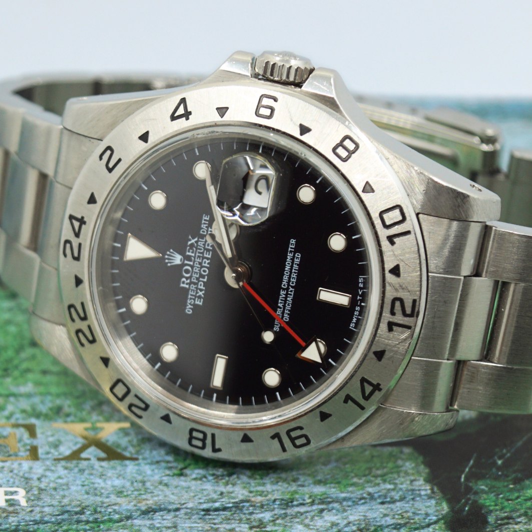 Description: Rolex; A gentleman's wristwatch, Explorer ll, Oyster Perpetual Date. From 1997. Ref. 16570. In Steel and with black dial. Diam 40 mm.