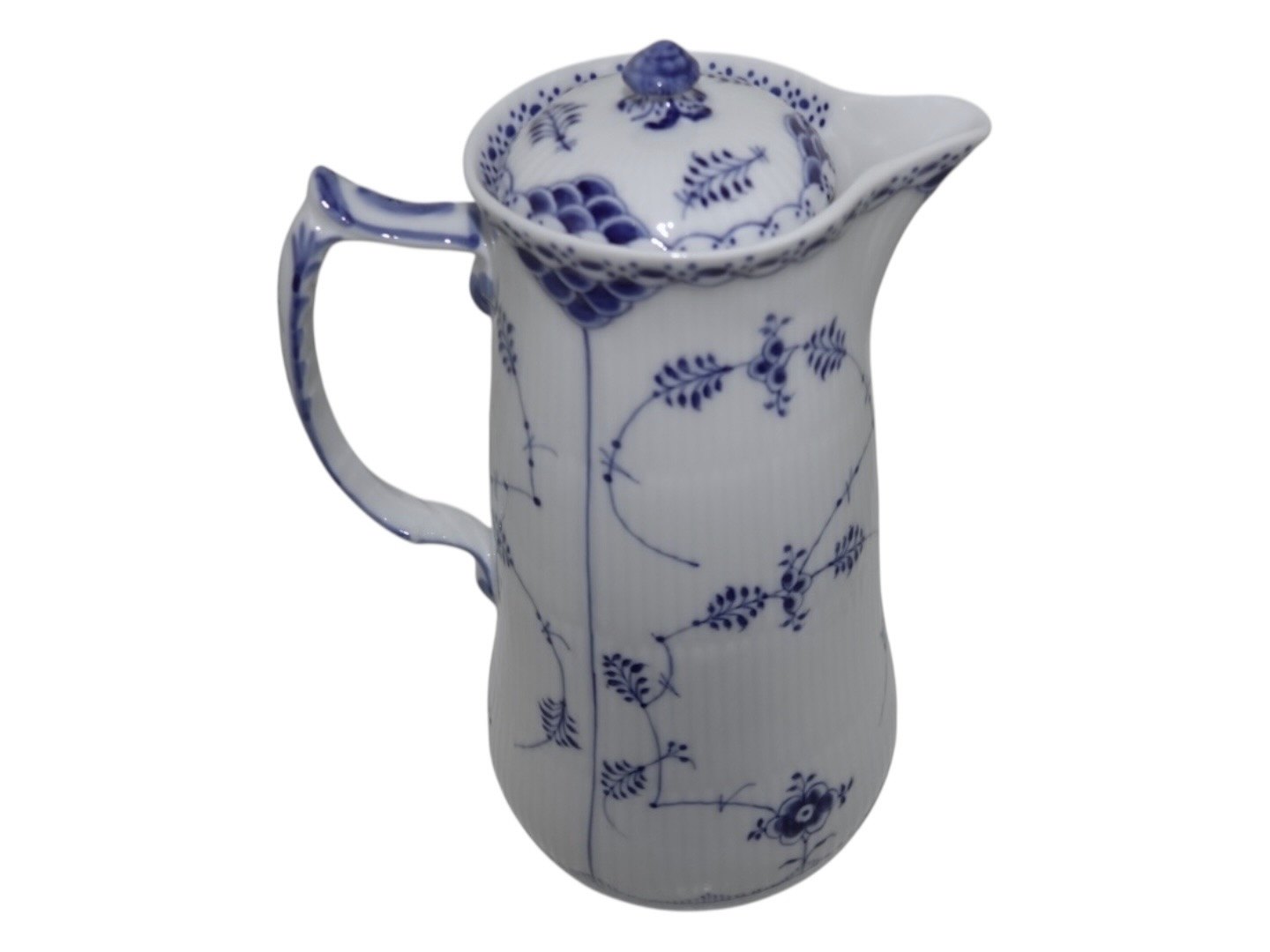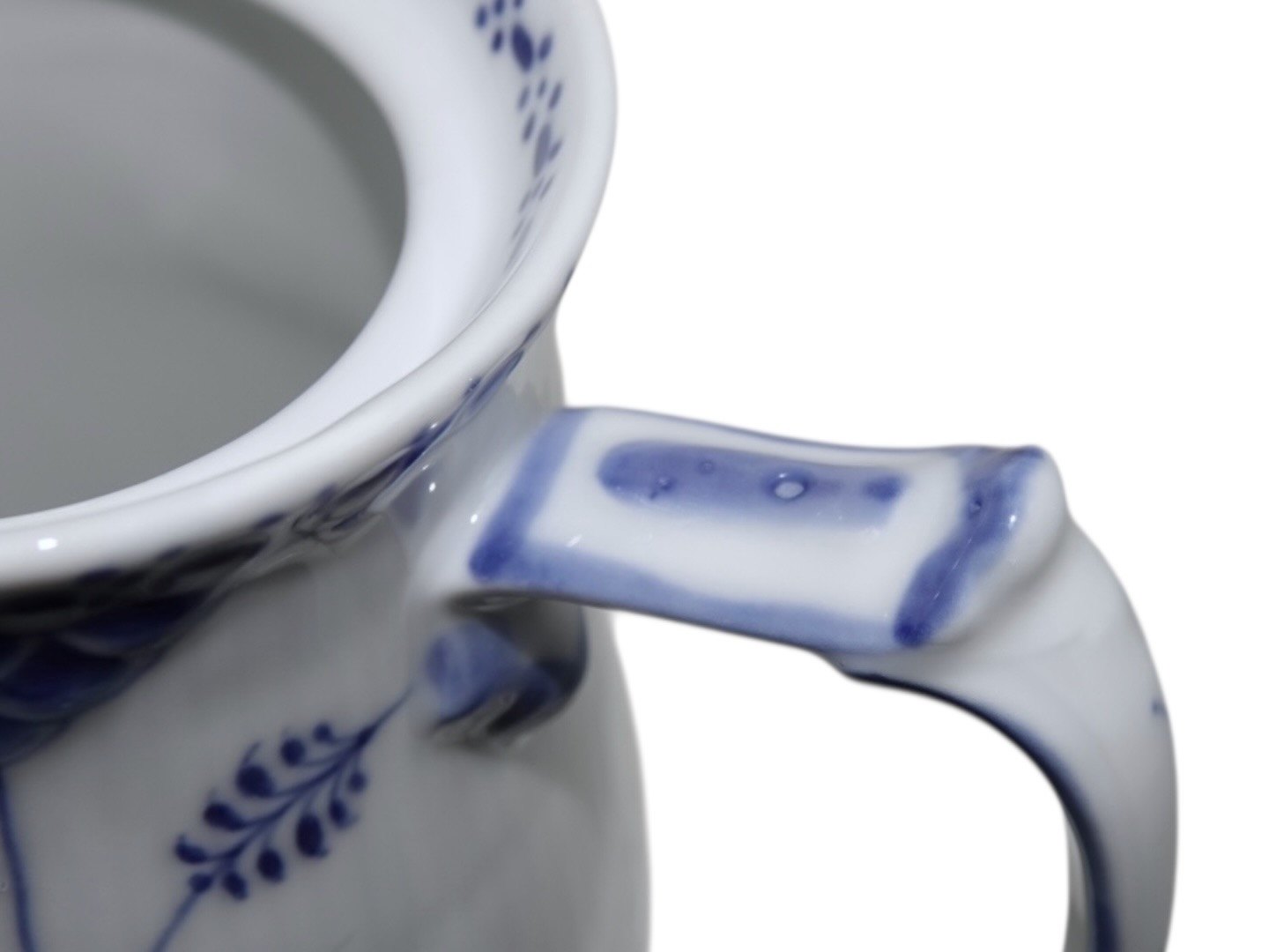 Beskrivelse: Royal Copenhagen Musselmalet Halvblonde, sjælden chokoladekande.