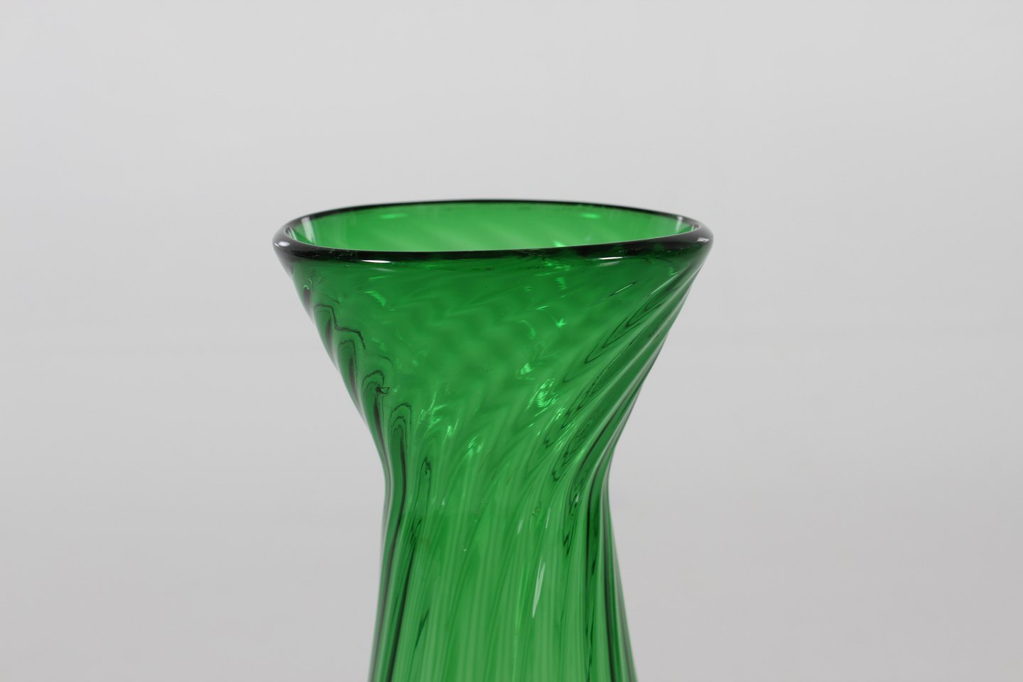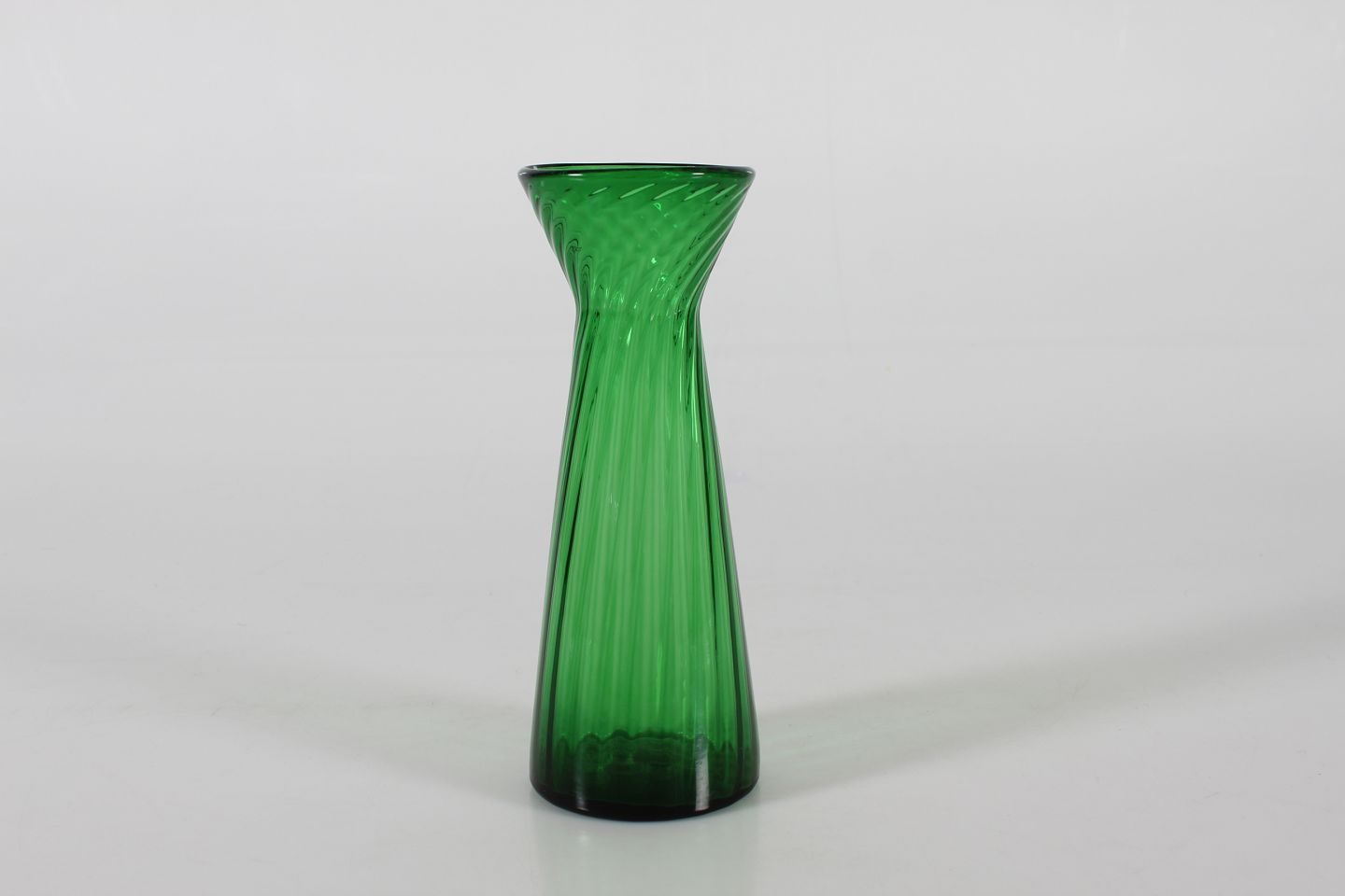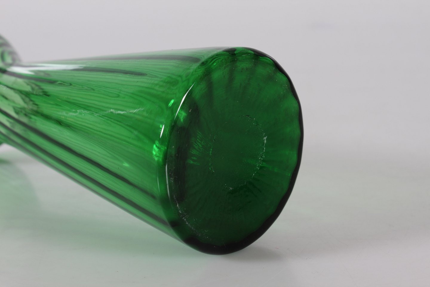 Gammel dansk grønt hyacintglas i let vreden form