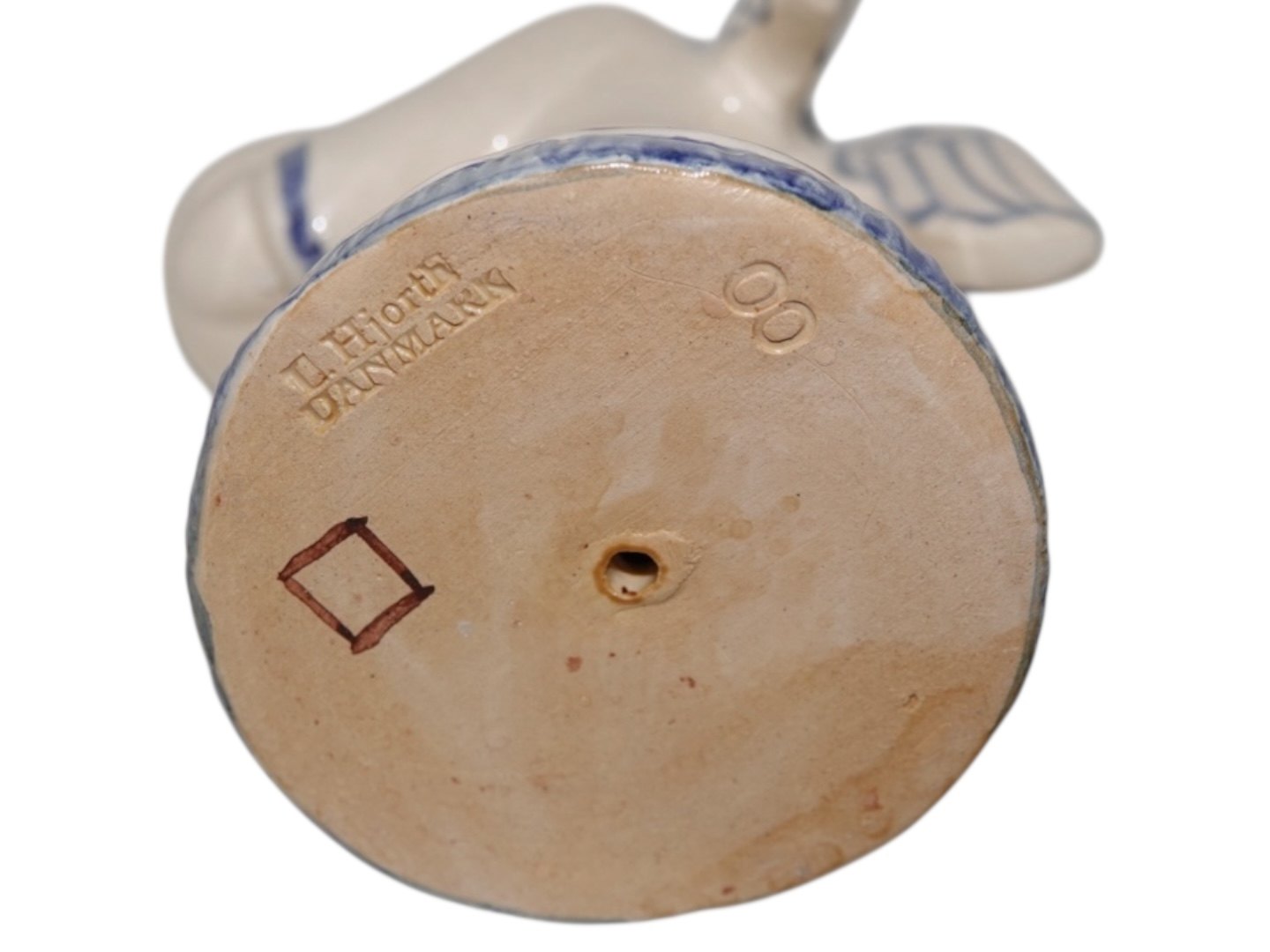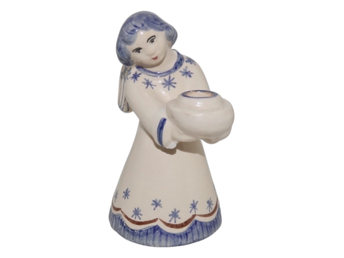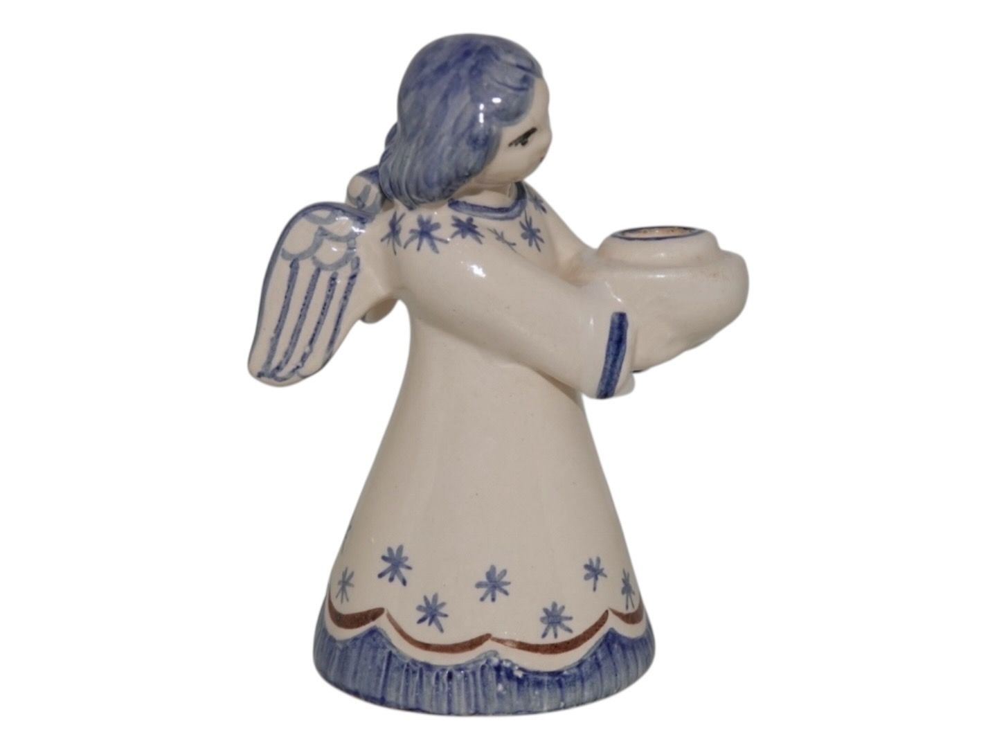 Beskrivelse: Hjorth Keramik, engel figur / lysestage med cremehvid og blå dekoration.