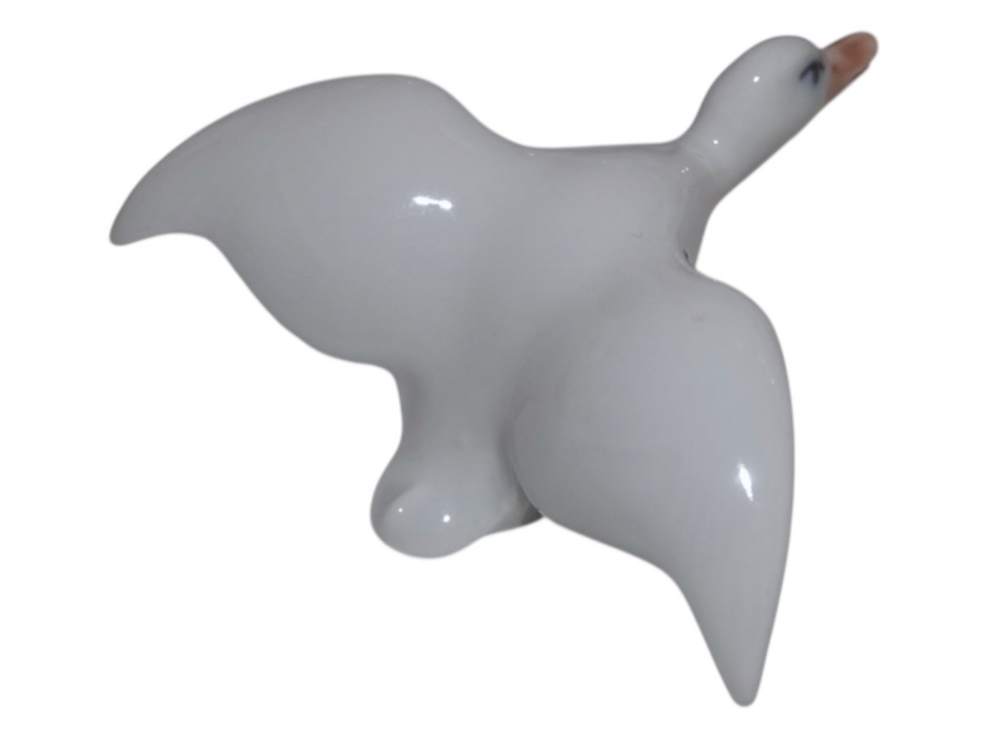 Beskrivelse: Royal Copenhagen miniature fugle figur, hvid flyvende and.