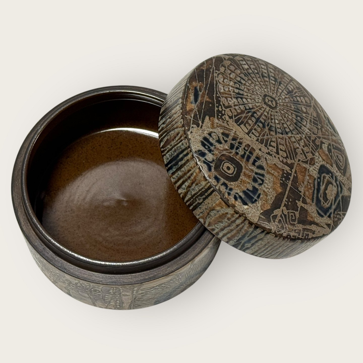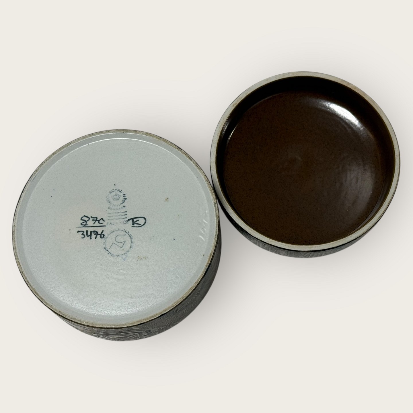 Beskrivelse: Royal Copenhagen, Lågkrukke, # 87C / 3476, diameter 11cm, højde 6,5, design Nils Thorsson *Flot stand*