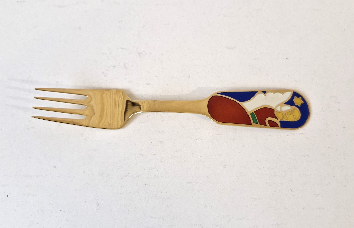 Description: A.Michelsen Christmas fork in gold-plated sterling silver and enamel from 1989