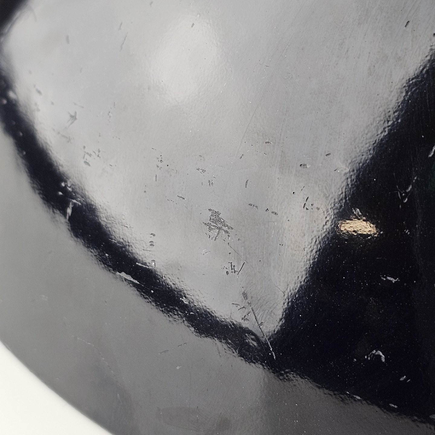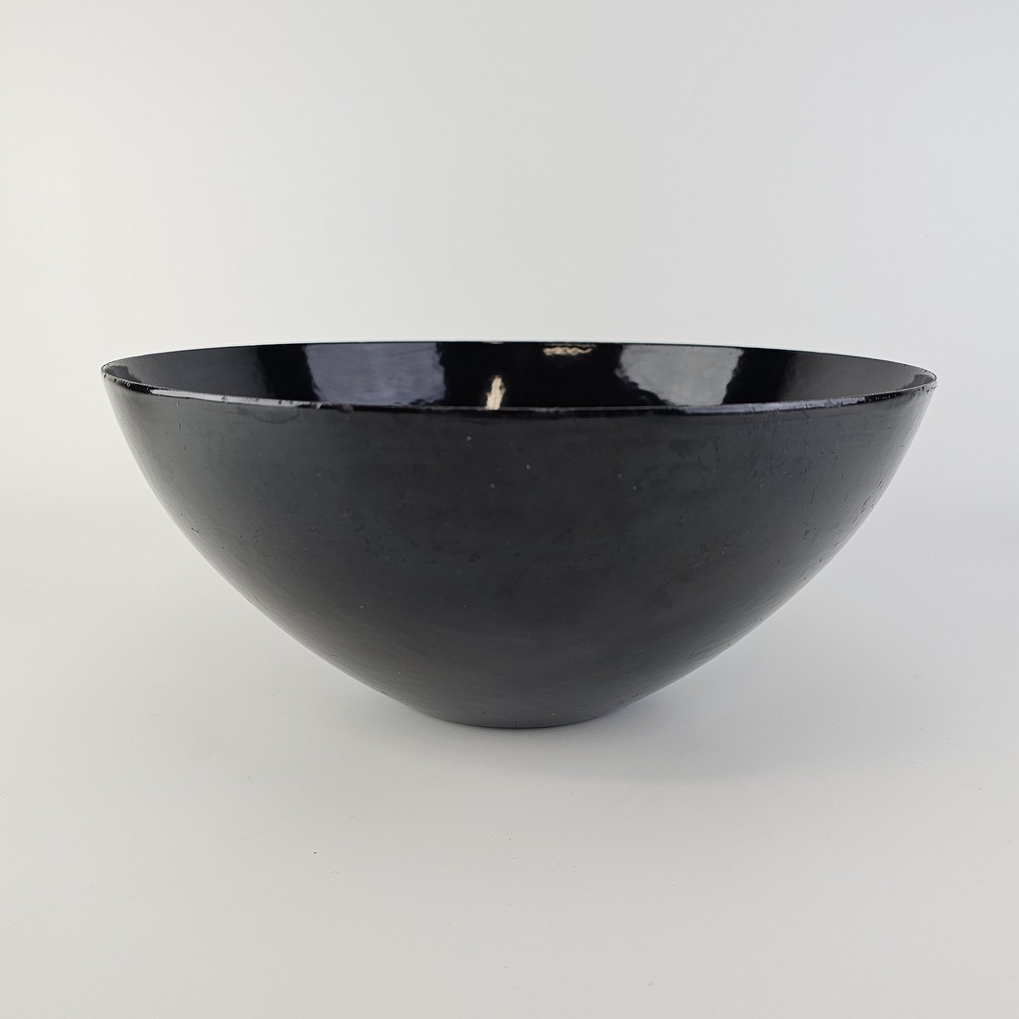 Beskrivelse: Krenit skål af sort metal med sort emalje indvendigt og udvendigt