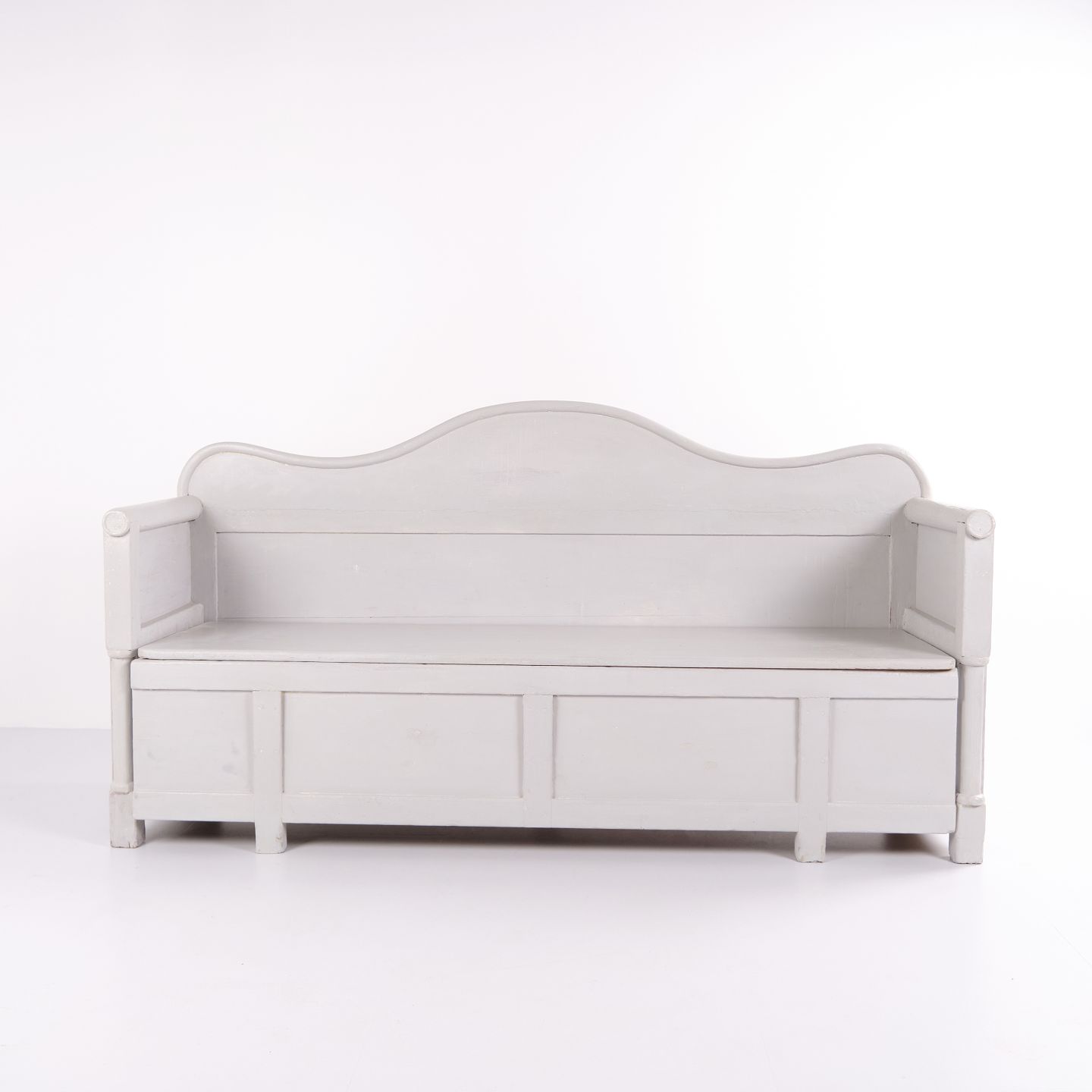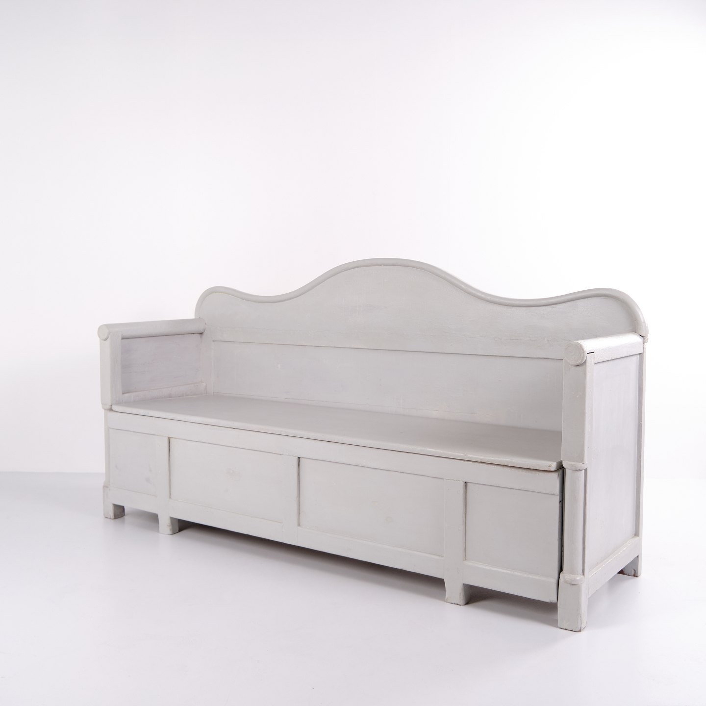 Antik Svensk Slagbænk - Grå bemalet - Opbevaring - 1900 tallet