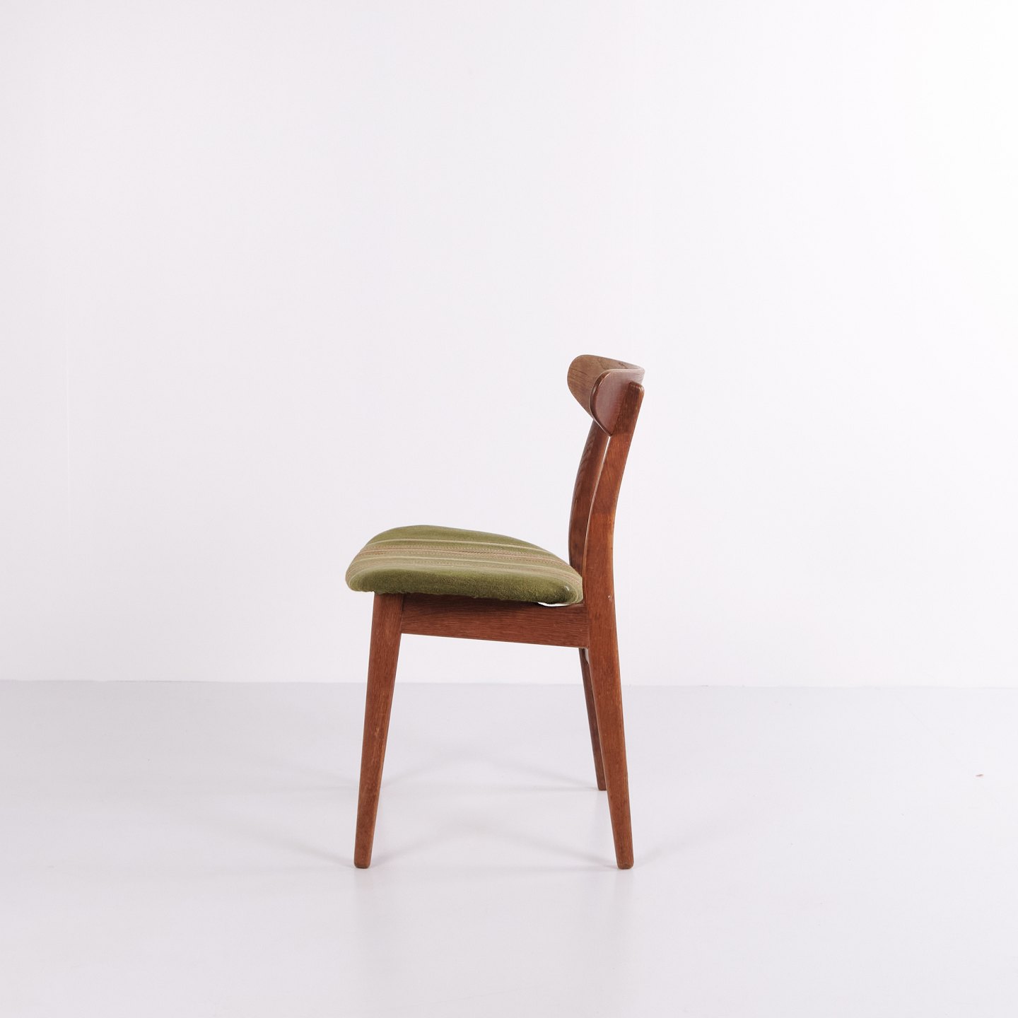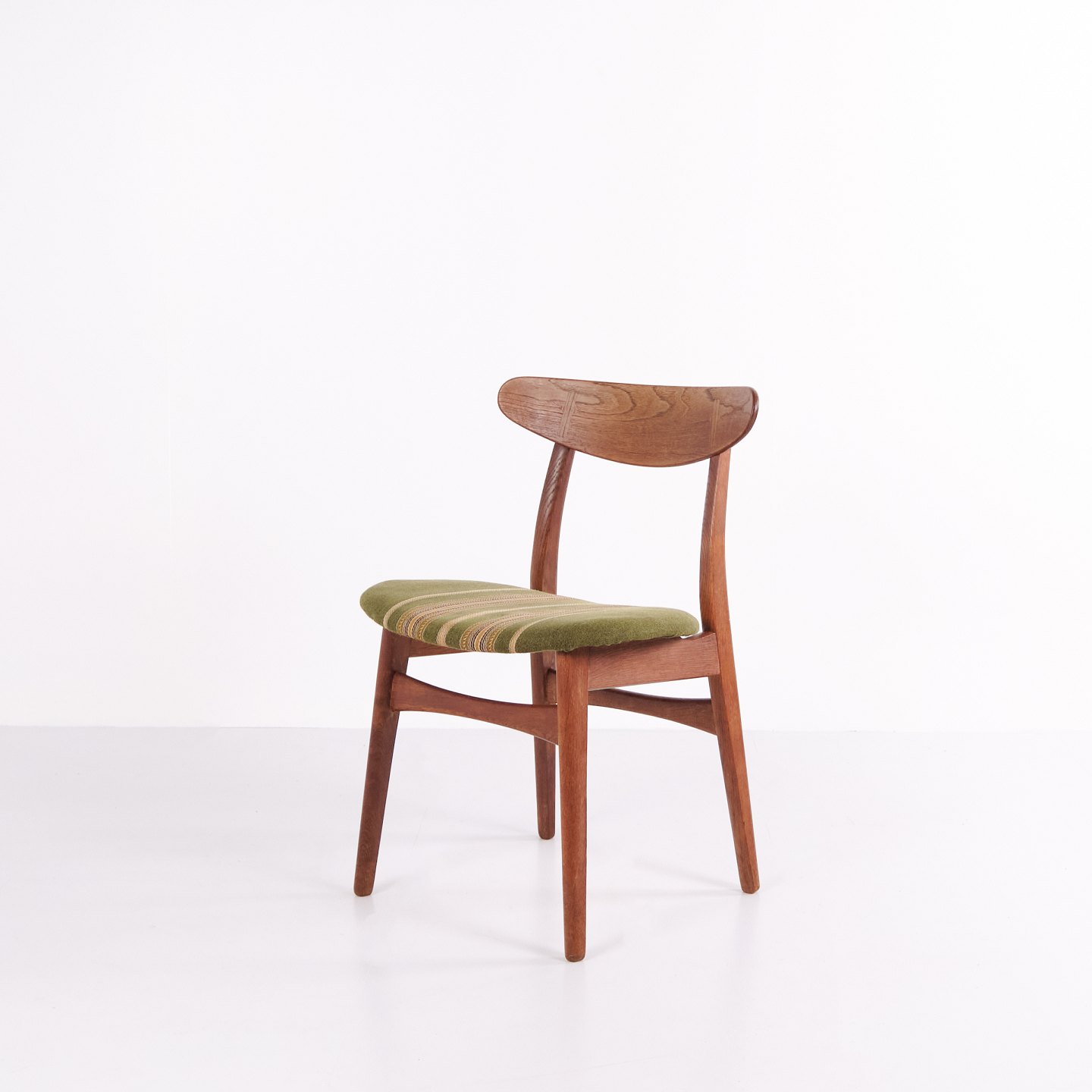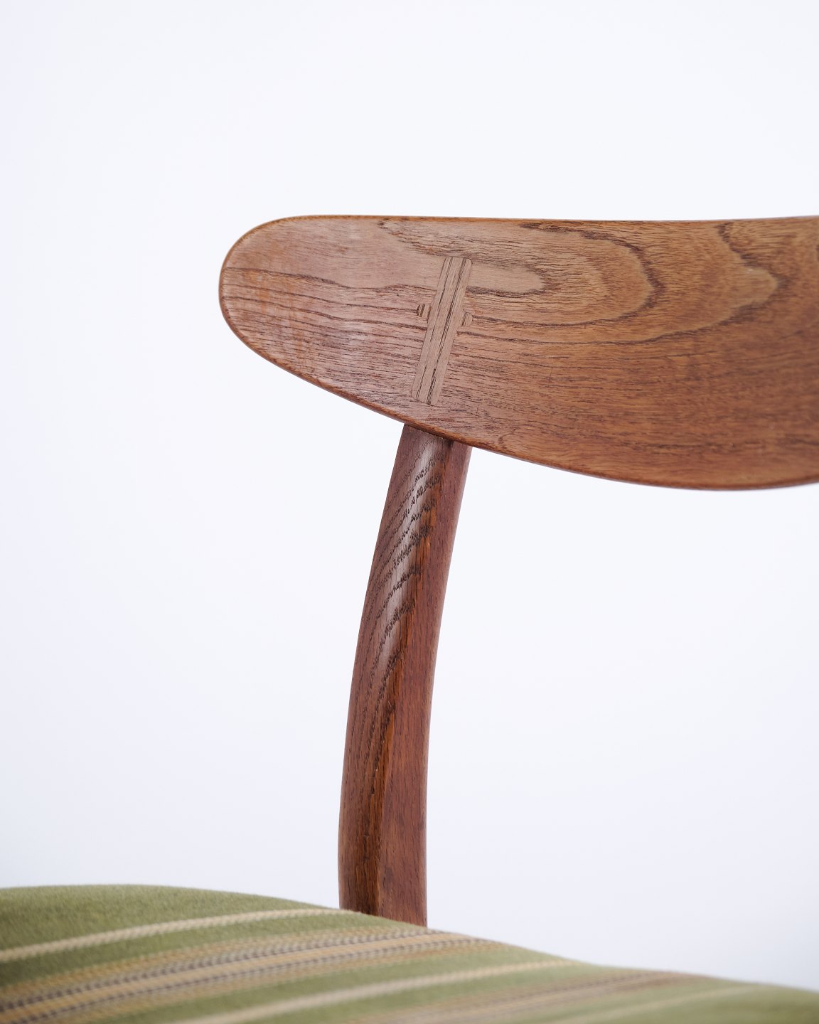 Beskrivelse: Sæt af seks spisebordsstole, model CH30, designet af Hans J. Wegner i 1954 og produceret i 1950’erne. Stolene er udført i teak og eg med originalt brændemærke. En klassisk Wegner-model med god siddekomfort og velkendt håndværk fra perioden.