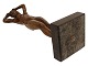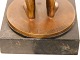 Beskrivelse: Volmer Bahner (1912-1995) bronze figur af nøgen dame der reder sit hår. Hun står på en sten sokkel.