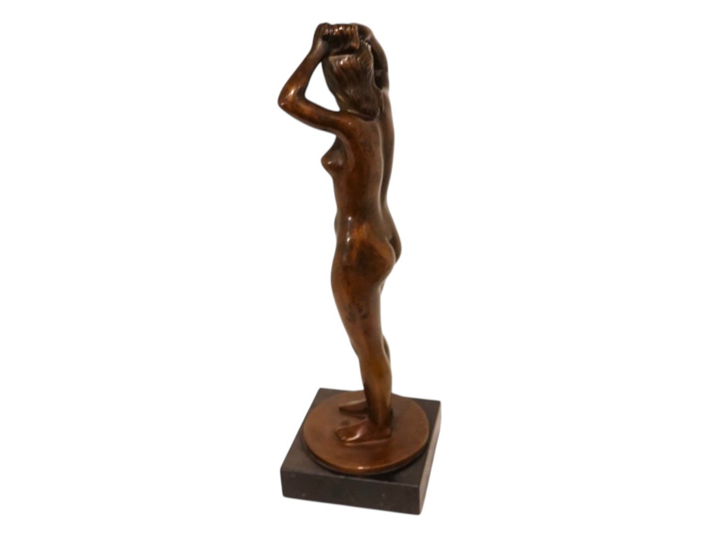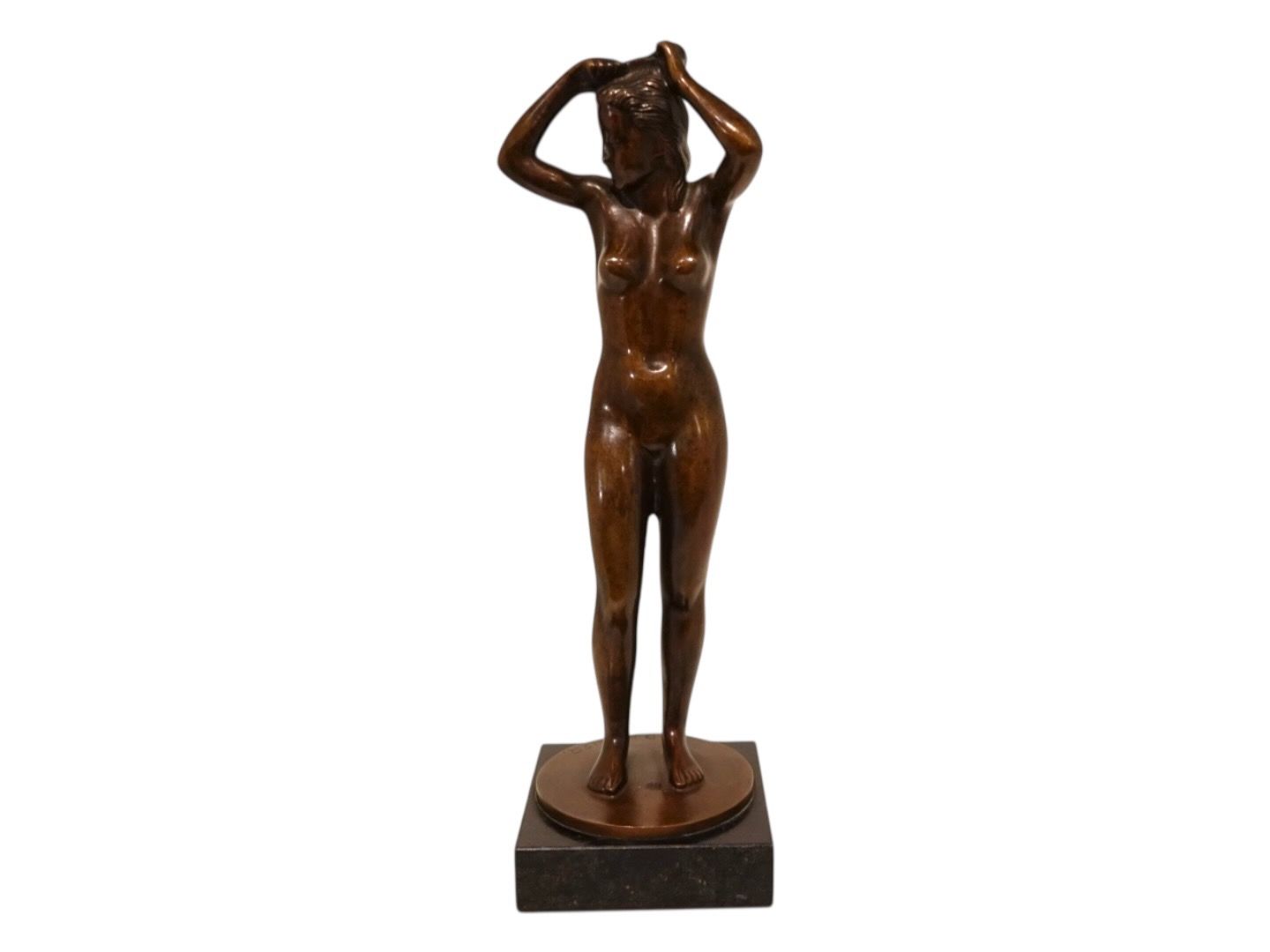 Bronze figur af nøgen dame der reder hår