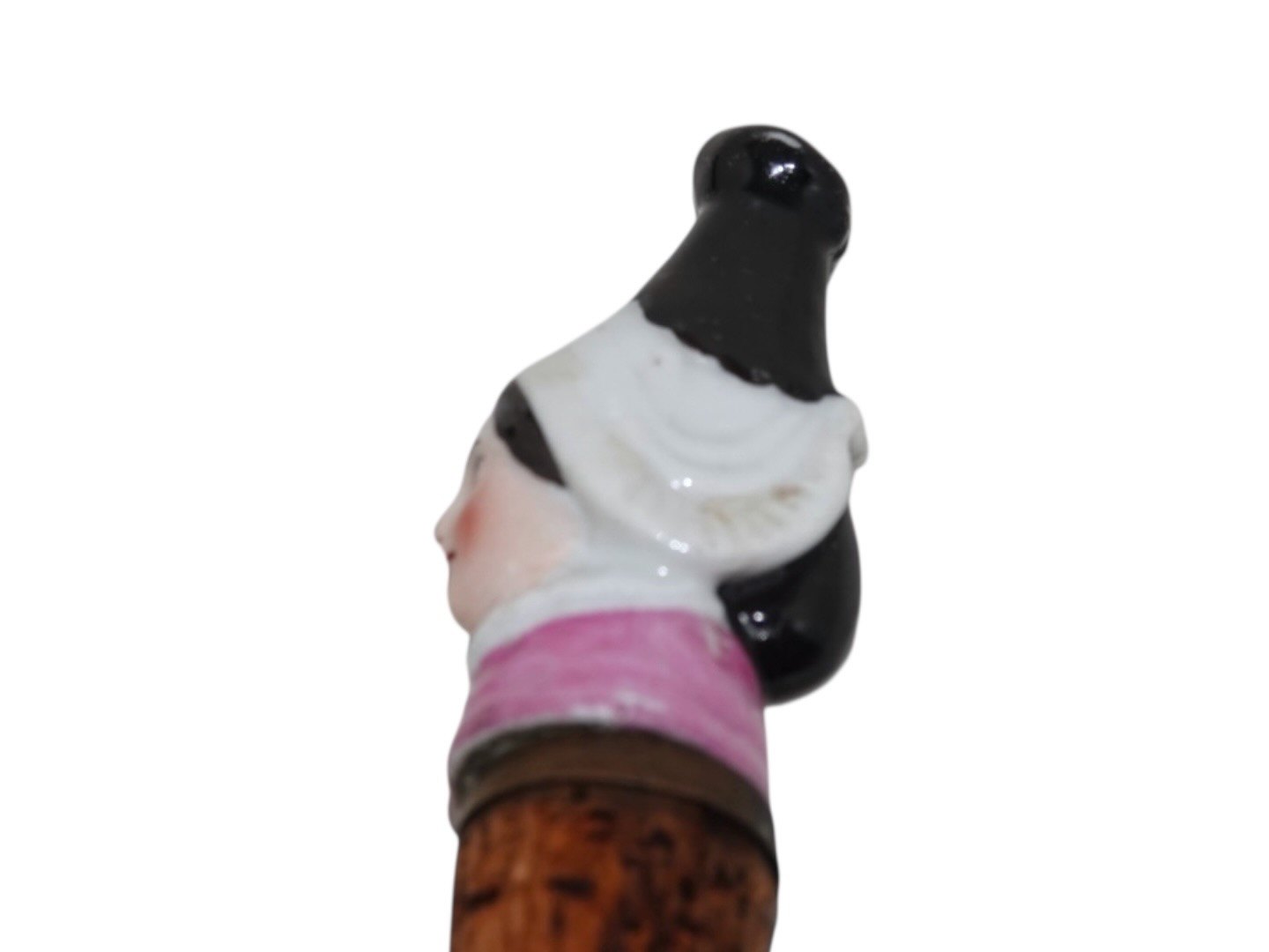 Beskrivelse: Flaskeprop af dame fra ca. år 1890-1900.