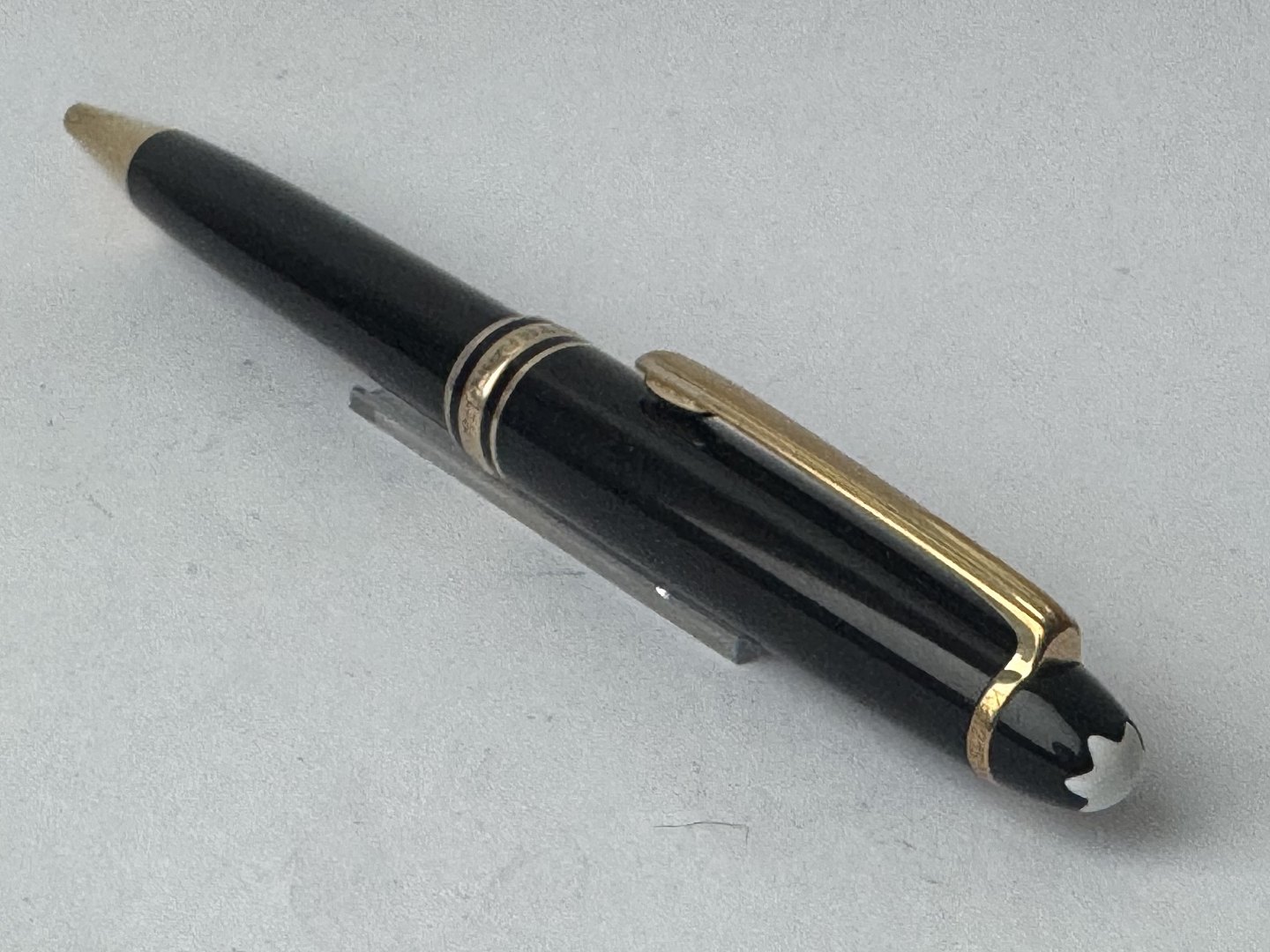 Beskrivelse: Slank sort Montblanc Meisterstück Classique kuglepen. Klar til at blive brugt med nyere refill. Fremstår i god stand. L. 13,5 cm