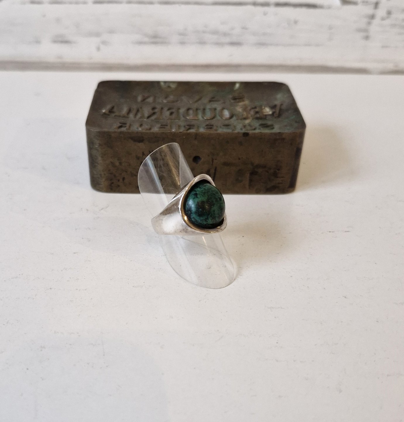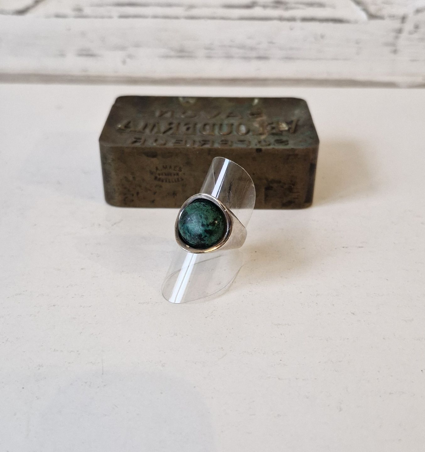 Vintage sølv ring med malakit