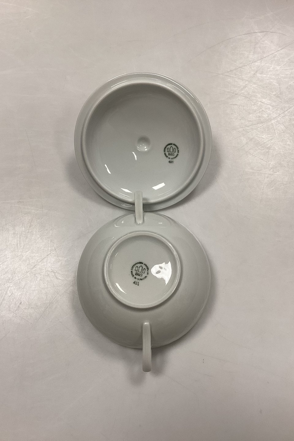 Beskrivelse: Bing og Grøndahl Elegance hvid Bouillonkop med Låg No. 247/481