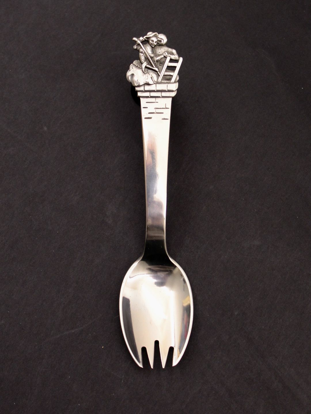 Beskrivelse: H C Andersen barne ske/gaffel 14,5 cm. "Hyrdinden og Skorstensfejeren" tretårnet sølv flot som ny ingen graveringer emne nr. 628495
