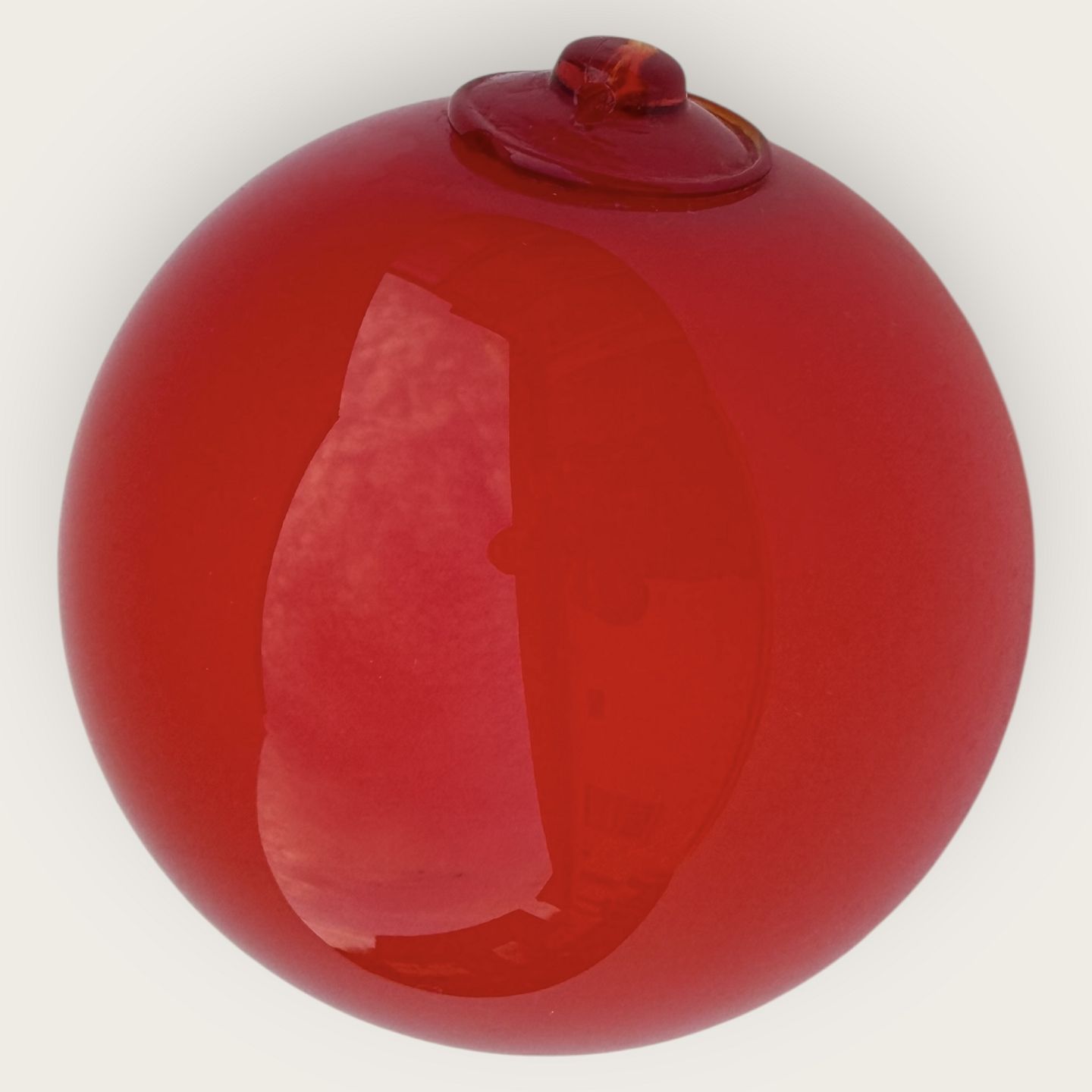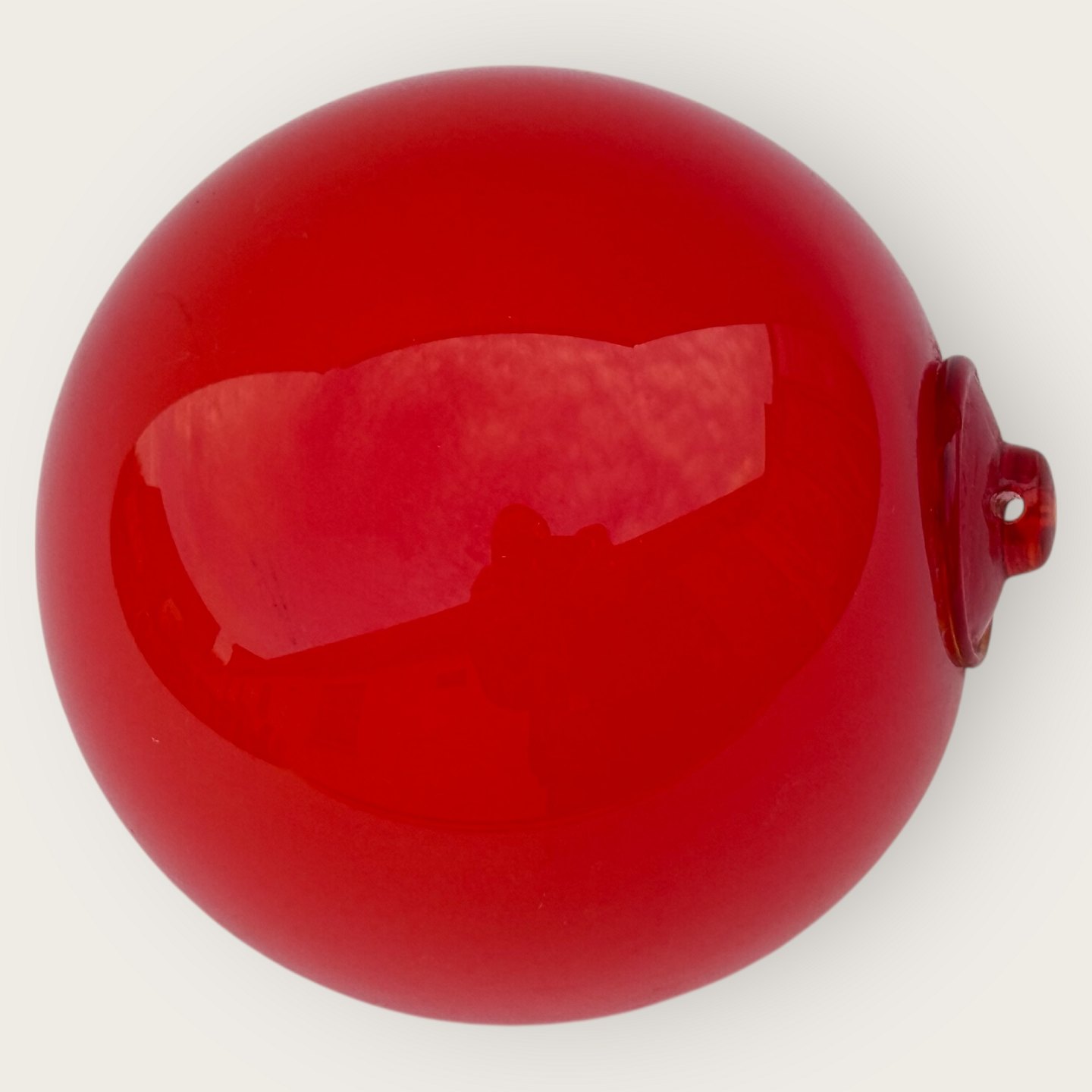 Beskrivelse: Holmegaard rød glas kugle til ophæng eller til brug sammen med Carnaby / Otto Bauer vaser, Holmegaard 1970'erne, Ca. 10 cm i diameter *fin stand*