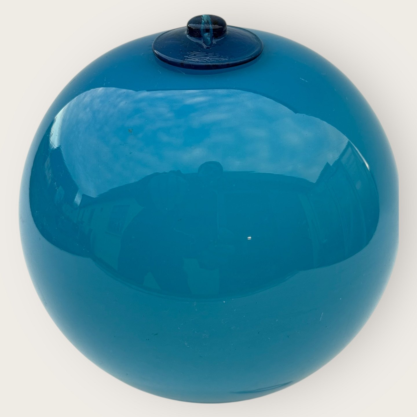 Beskrivelse: Holmegaard Turkis glas kugle til ophæng eller til brug sammen med Carnaby / Otto Bauer vaser, Holmegaard 1970'erne, Ca. 12 cm i diameter *fin stand*