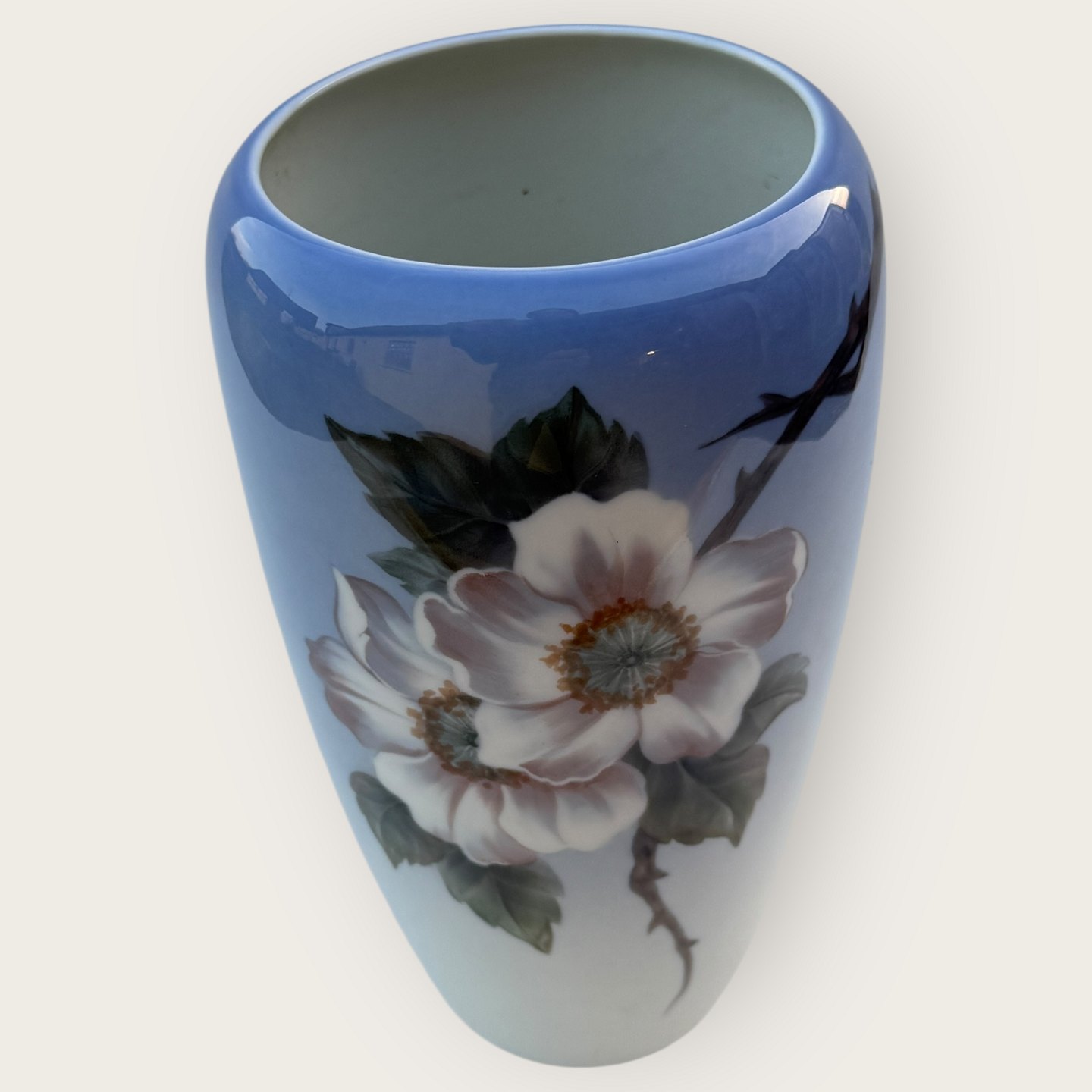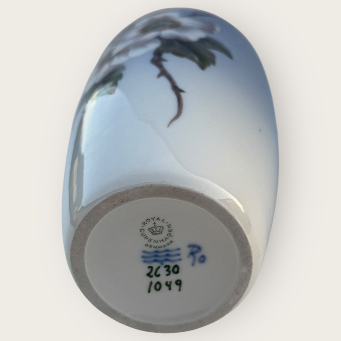 Beskrivelse: Royal Copenhagen, Vase med vildroser #2630 / 1049, 23cm høj, 12cm i diameter, 1.sortering *Perfekt stand*