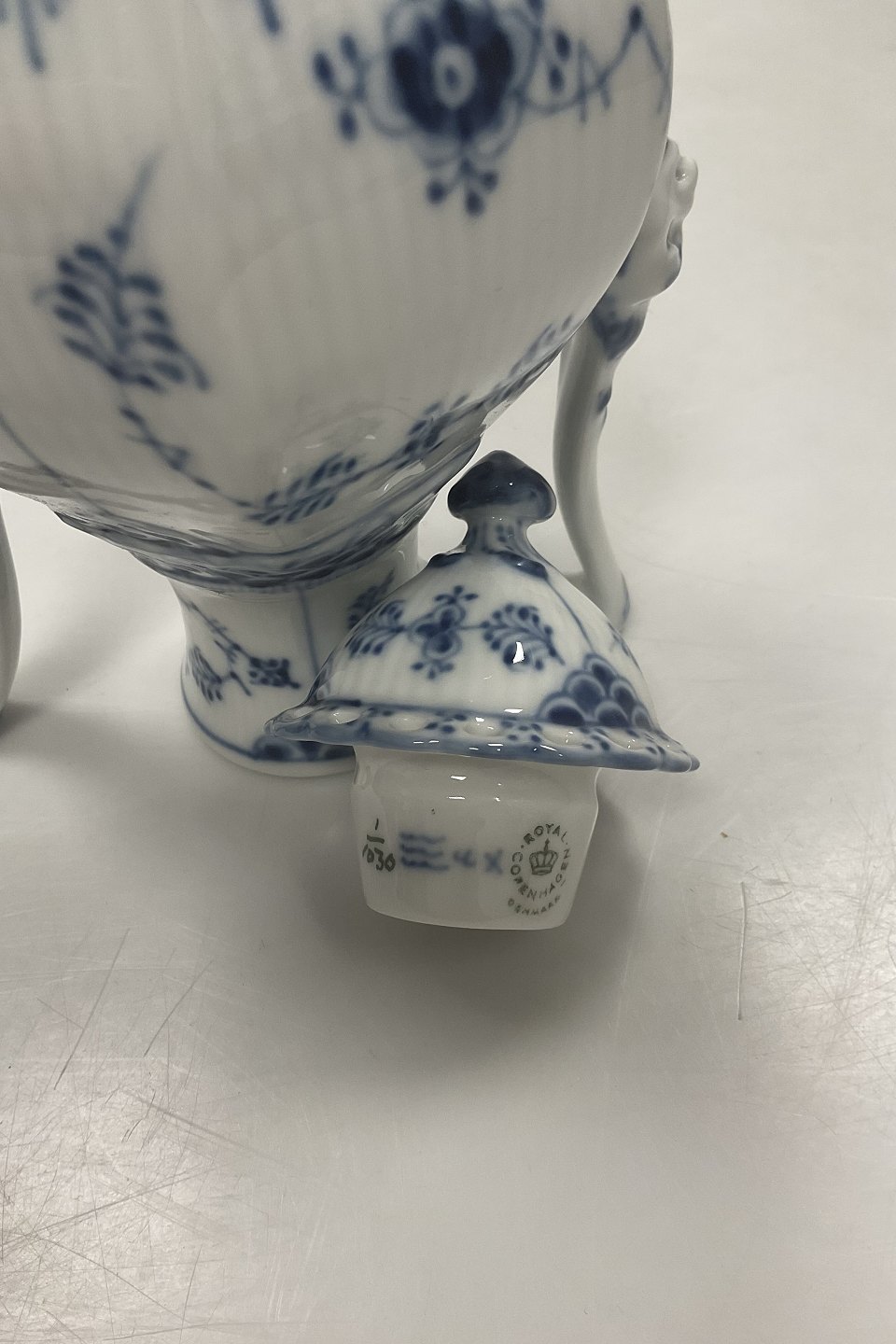 Royal Copenhagen Musselmalet Helblonde Lille sekskantet kaffekande No. 1030