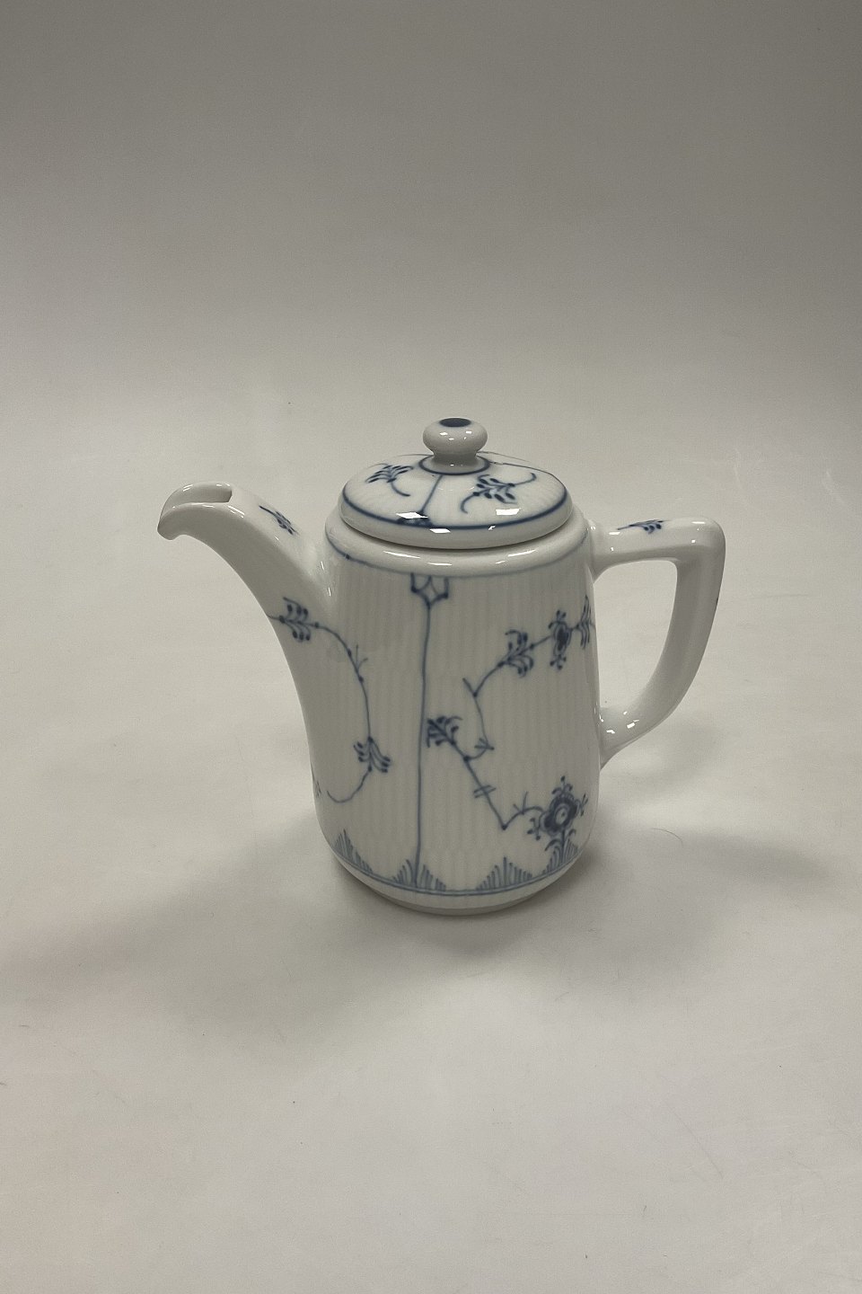 Beskrivelse: Royal Copenhagen Musselmalet Riflet Hotel Kaffekande No. 2214