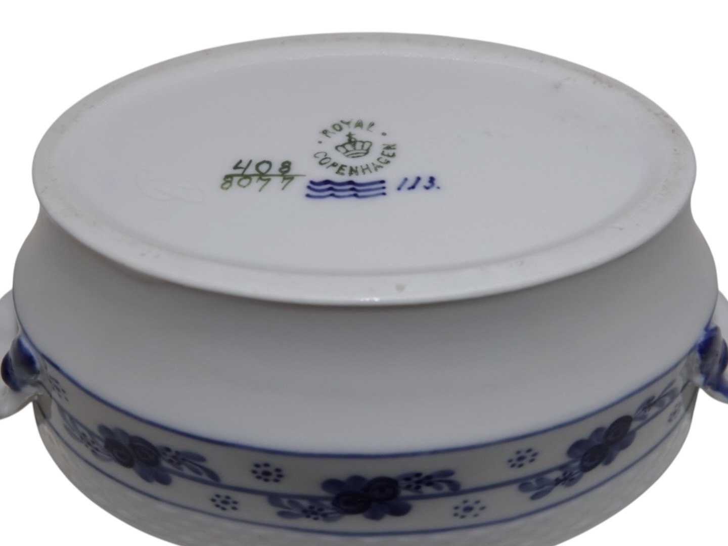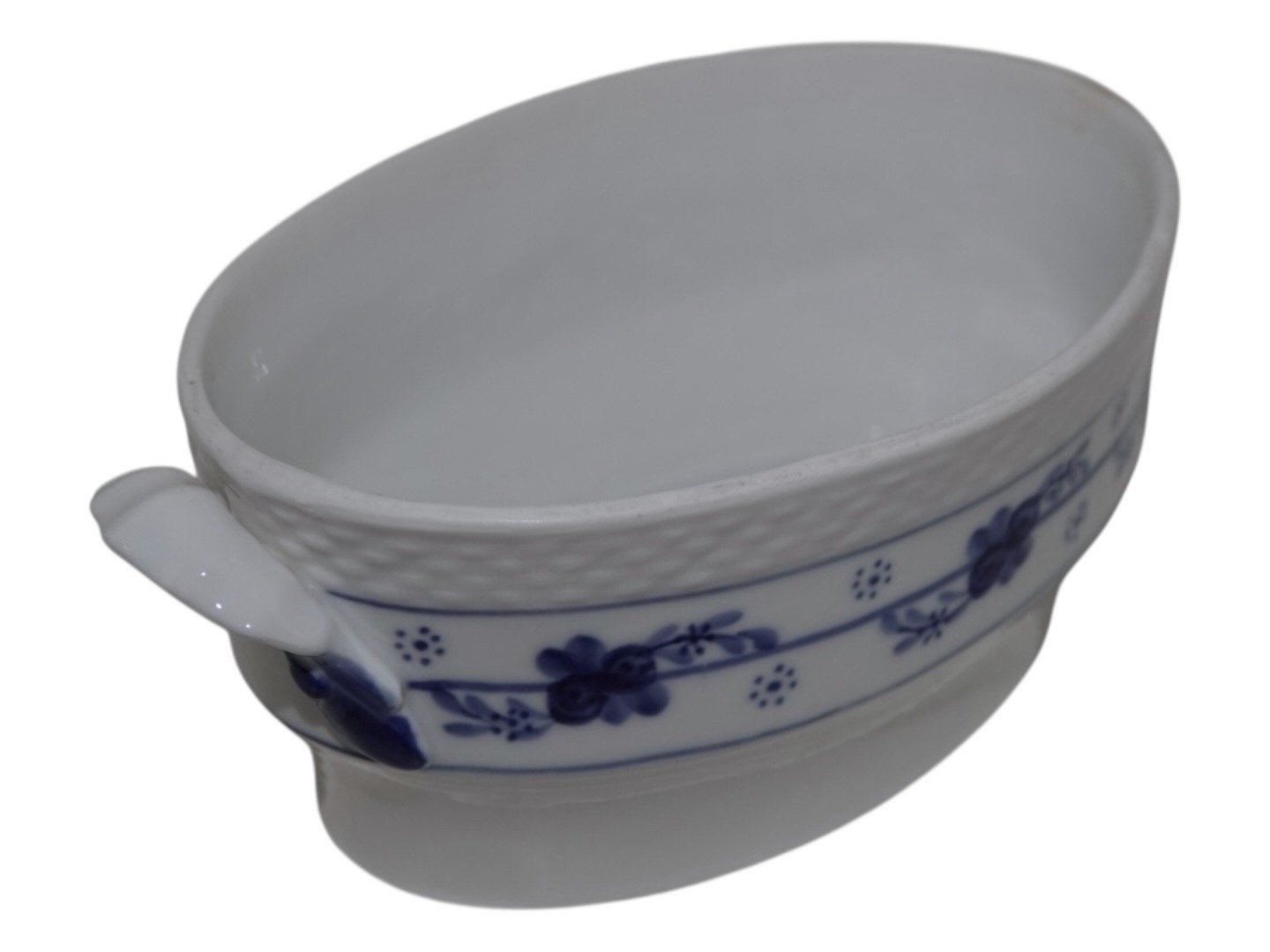 Beskrivelse: Royal Copenhagen Rosenknob / Blå Rose sjælden oval sukkerskål der mangler et låg.