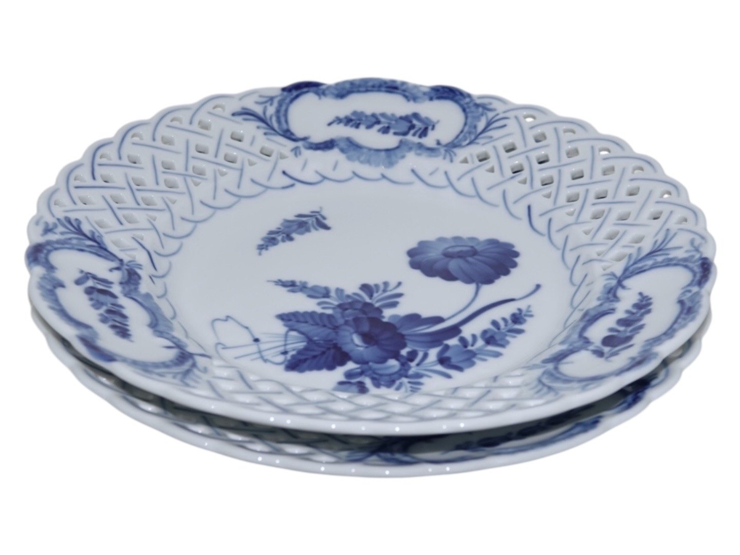 Beskrivelse: Royal Copenhagen Blå Blomst Svejfet, stor tallerken med dobbelt blondekant.