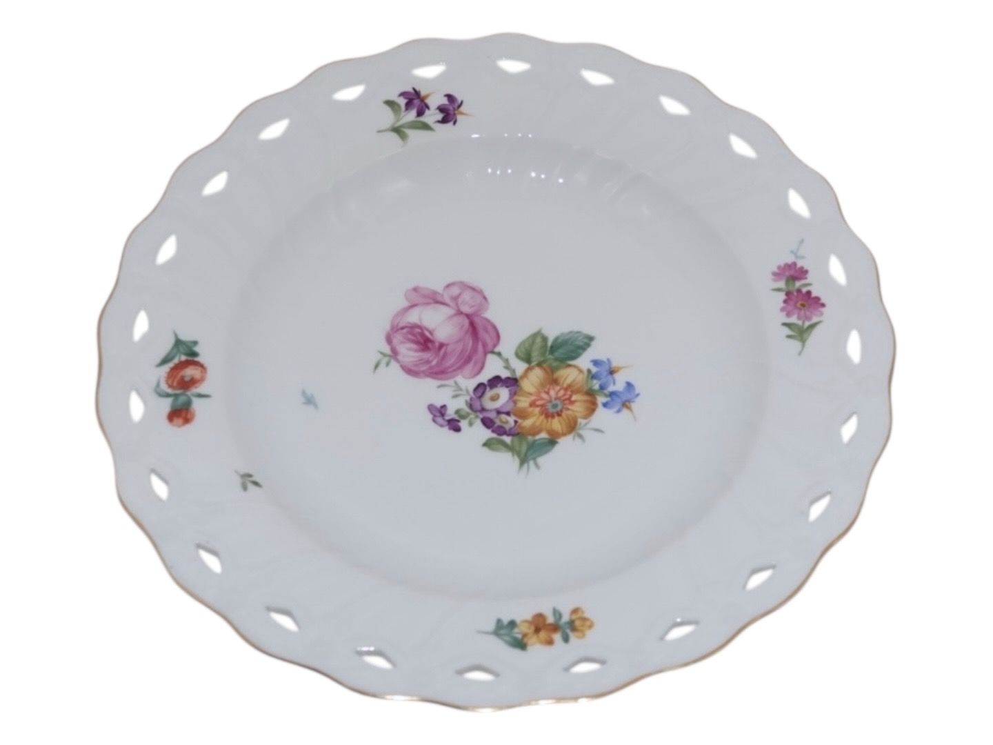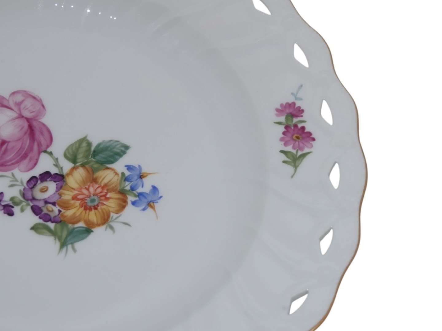 Beskrivelse: Royal Copenhagen Let Saksisk Blomst, sjælden middagstallerken med blondekant.