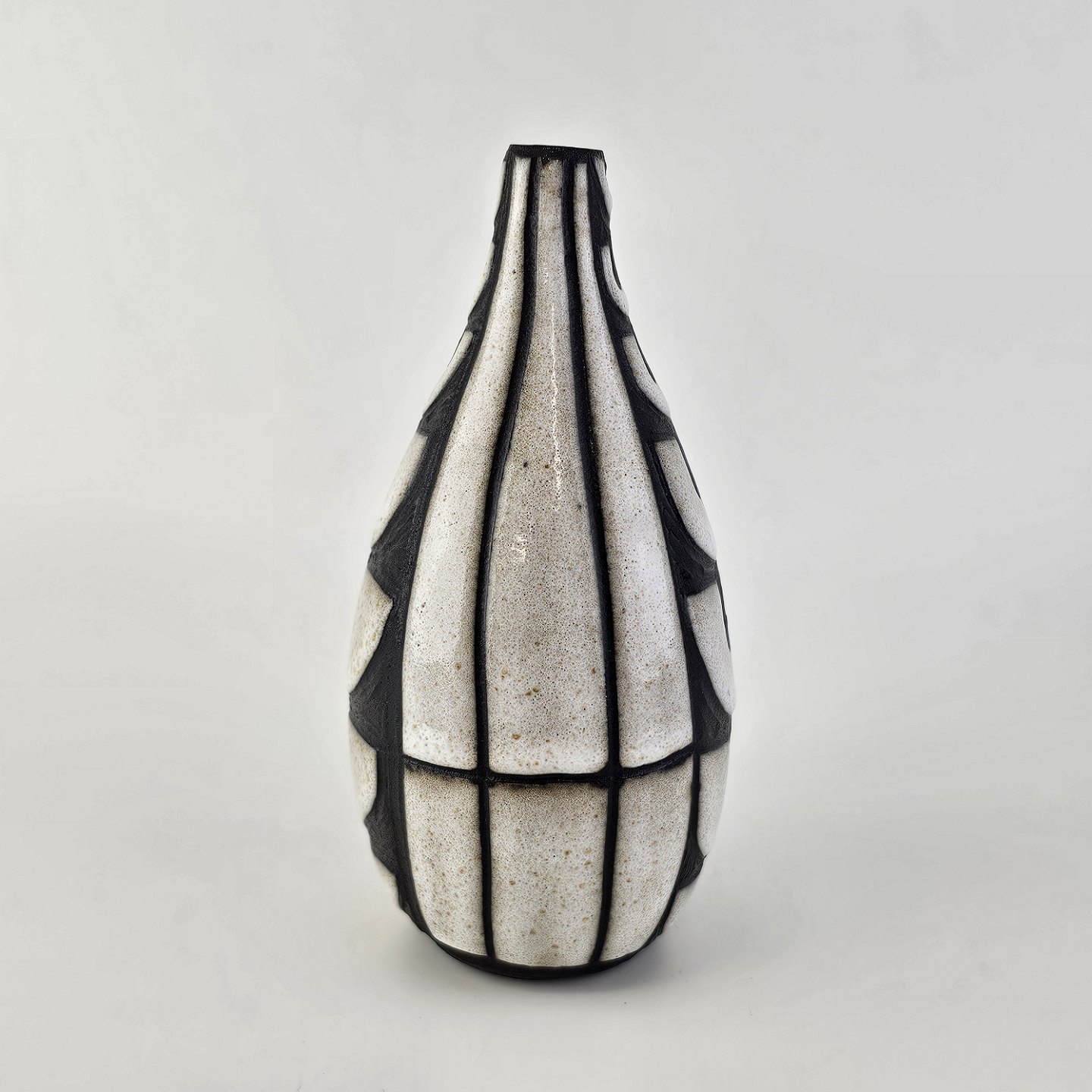 Beskrivelse: Vase i keramik fra Negro serien med abstrakt motiv på mørk baggrund. Nr. N5508