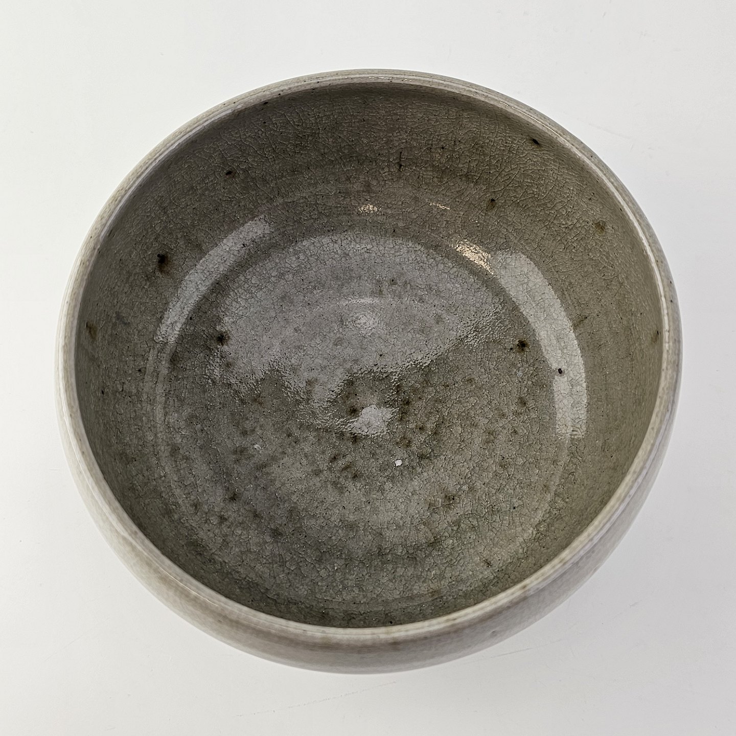 Beskrivelse: Grønlig keramik skål med krakelering.