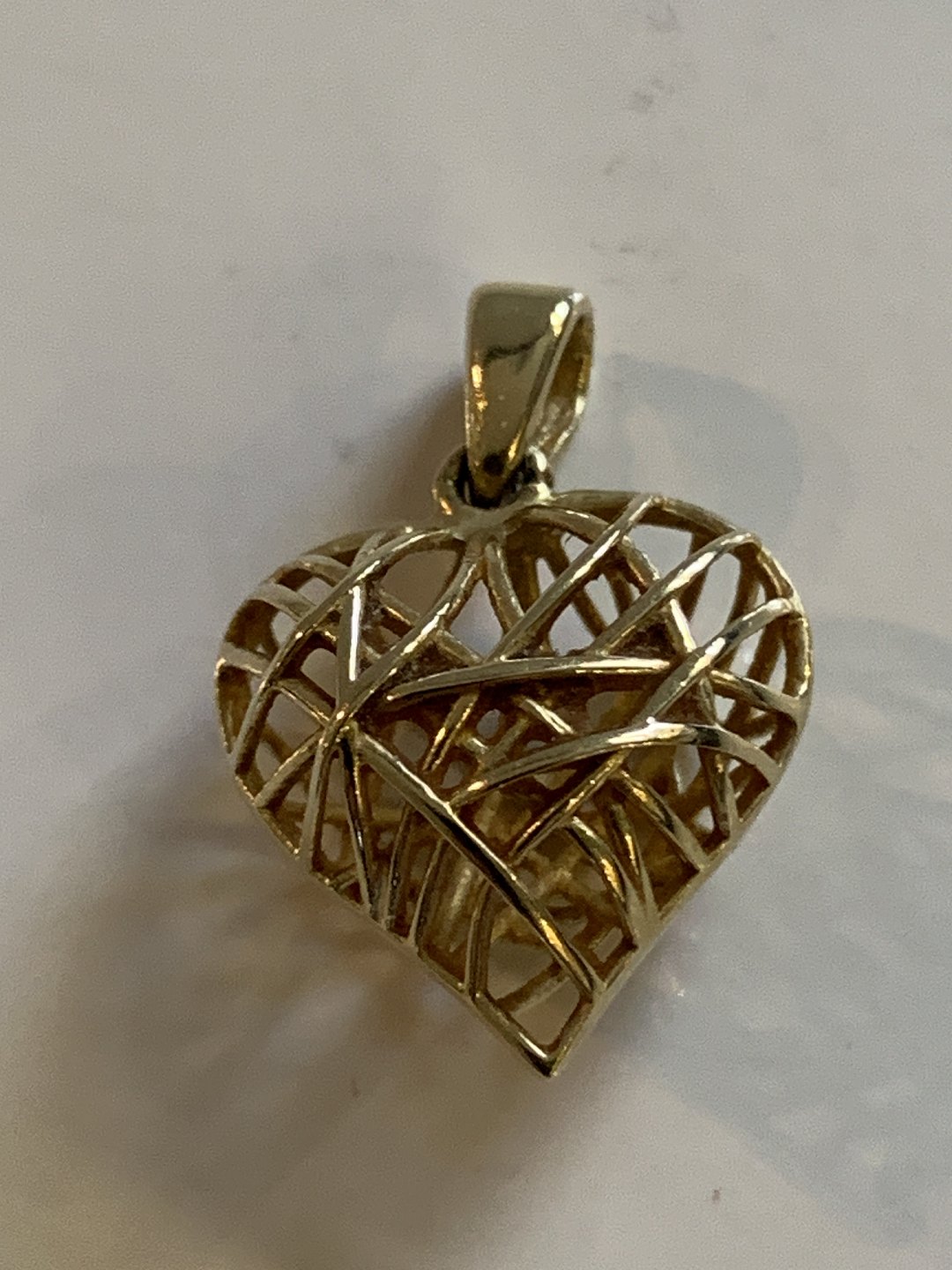 Beskrivelse: Dette hjerteformede vedhæng er lavet i anderledes stil, som om det er vævet af guldtråde. Det giver vedhænget et luftigt og levende udseende, der vil være et perfekt match med en tynd guldkæde. Designet af vedhænget, får det til at ligne et svulmende hjerte. Et flot vedhæng især til den unge pige.