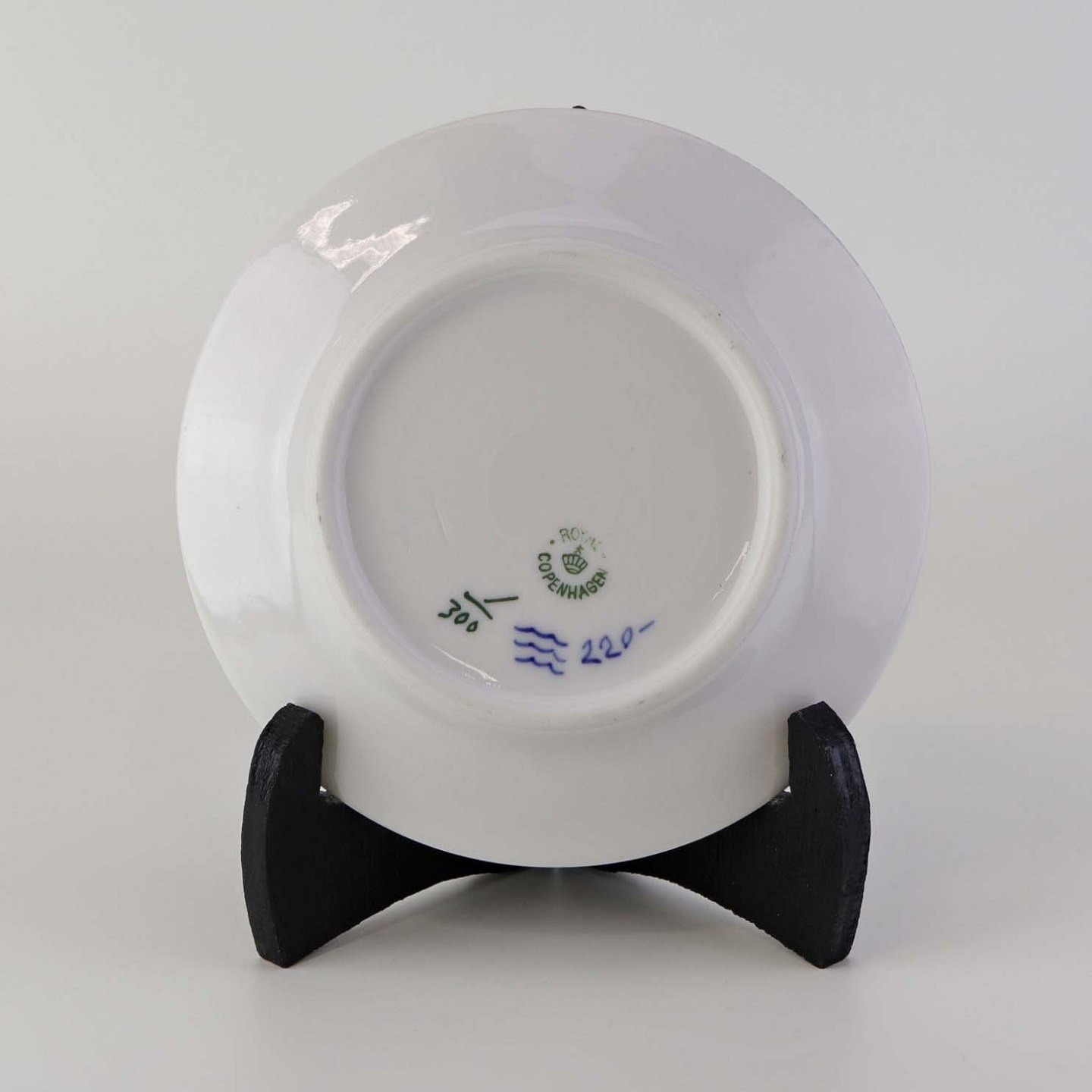 Beskrivelse: Flad kagetallerken i kongelig porcelæn fra stellet Musselmalet riflet. Nr. 1/300