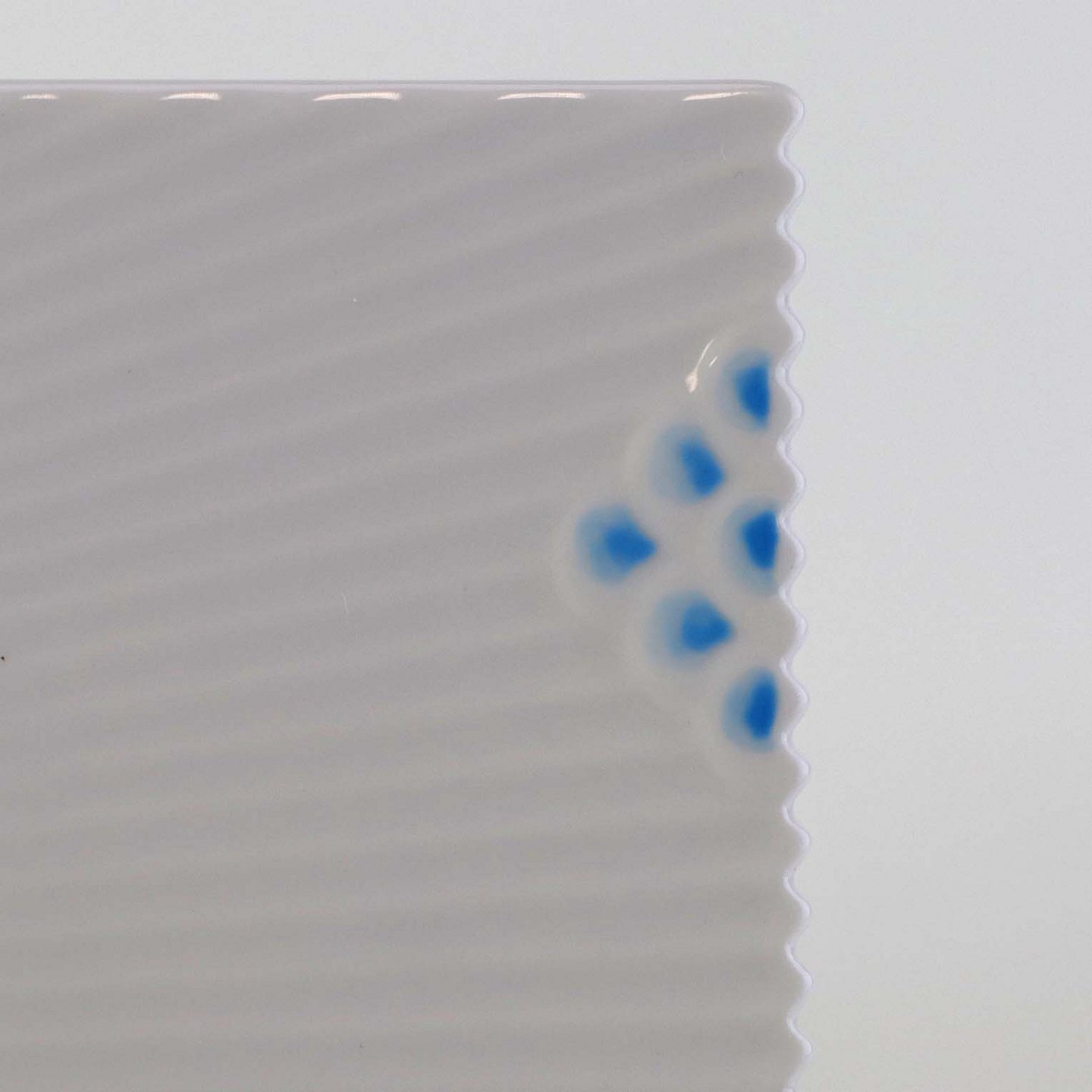 Beskrivelse: Smørrebræt med turkis mønster i kongeligt porcelæn fra stellet Multifarvet Elements. Nr. 883