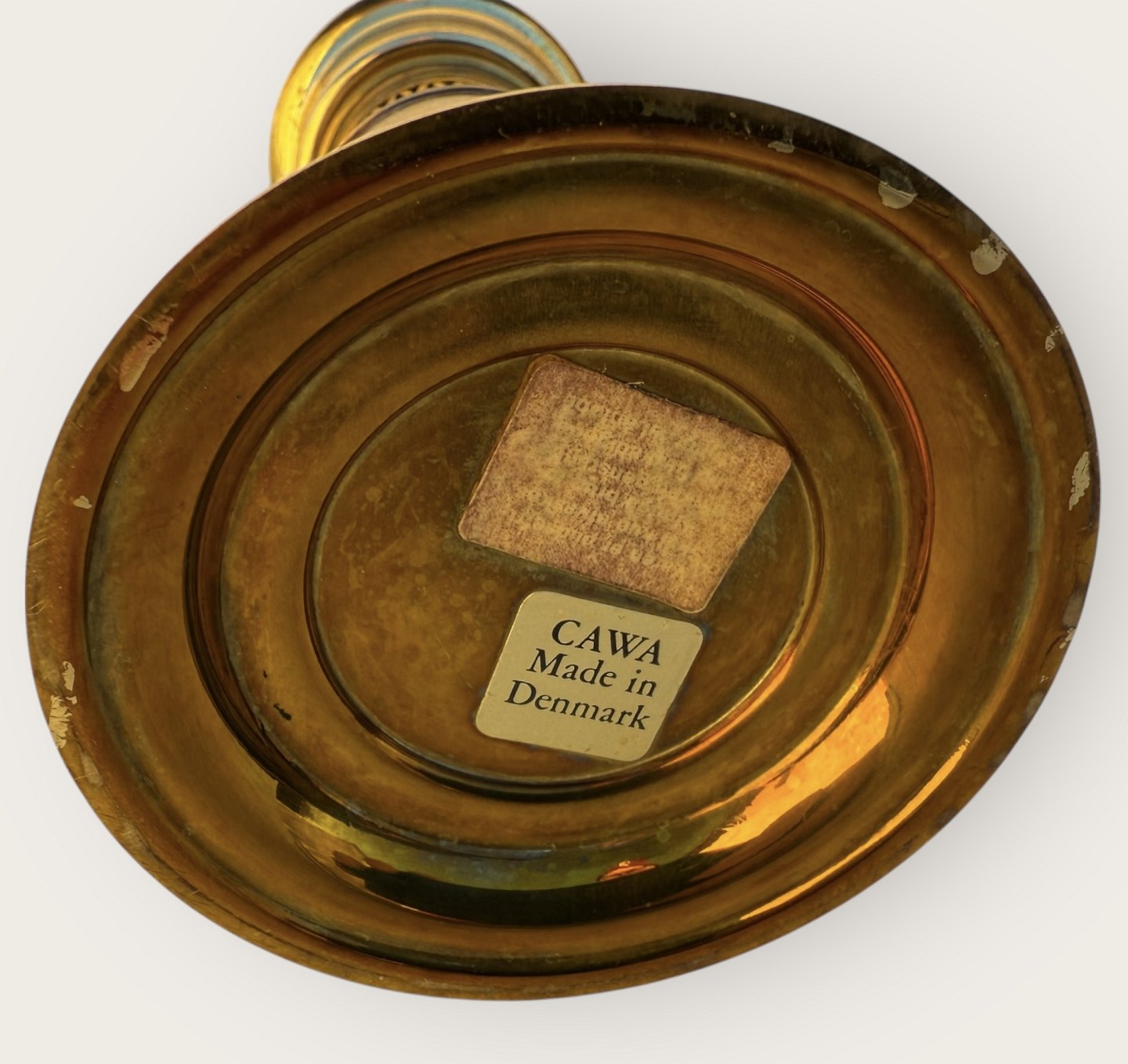 Beskrivelse: Cawa petroleumslampe, messing med glasskærm, højde 31cm, meget lille hak i brændeglasset øverst (se foto) *Ellers pæn patineret stand*