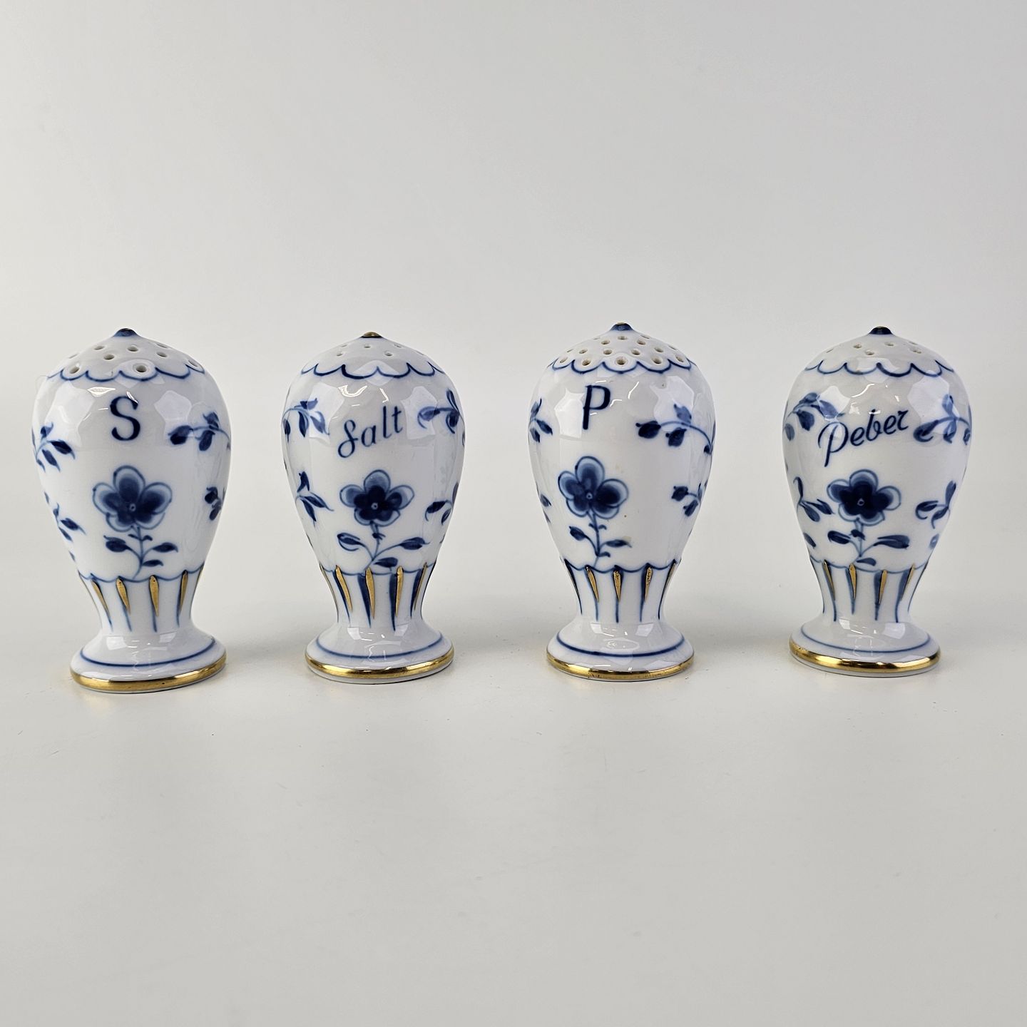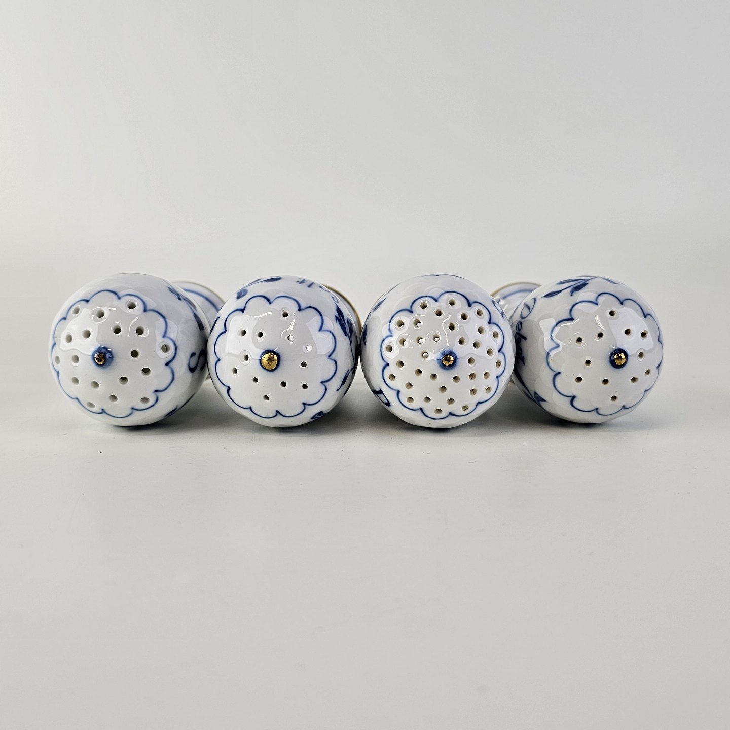 Beskrivelse: Salt- og peberbøsser i porcelæn fra stellet Kipling i fire varianter uden propper