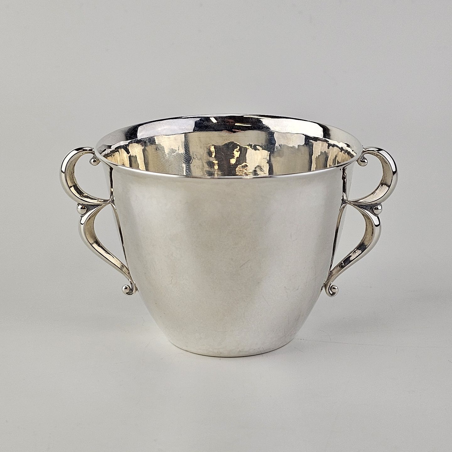 Beskrivelse: Bæger i sterling sølv med hanke produceret mellem 1945 og 1954