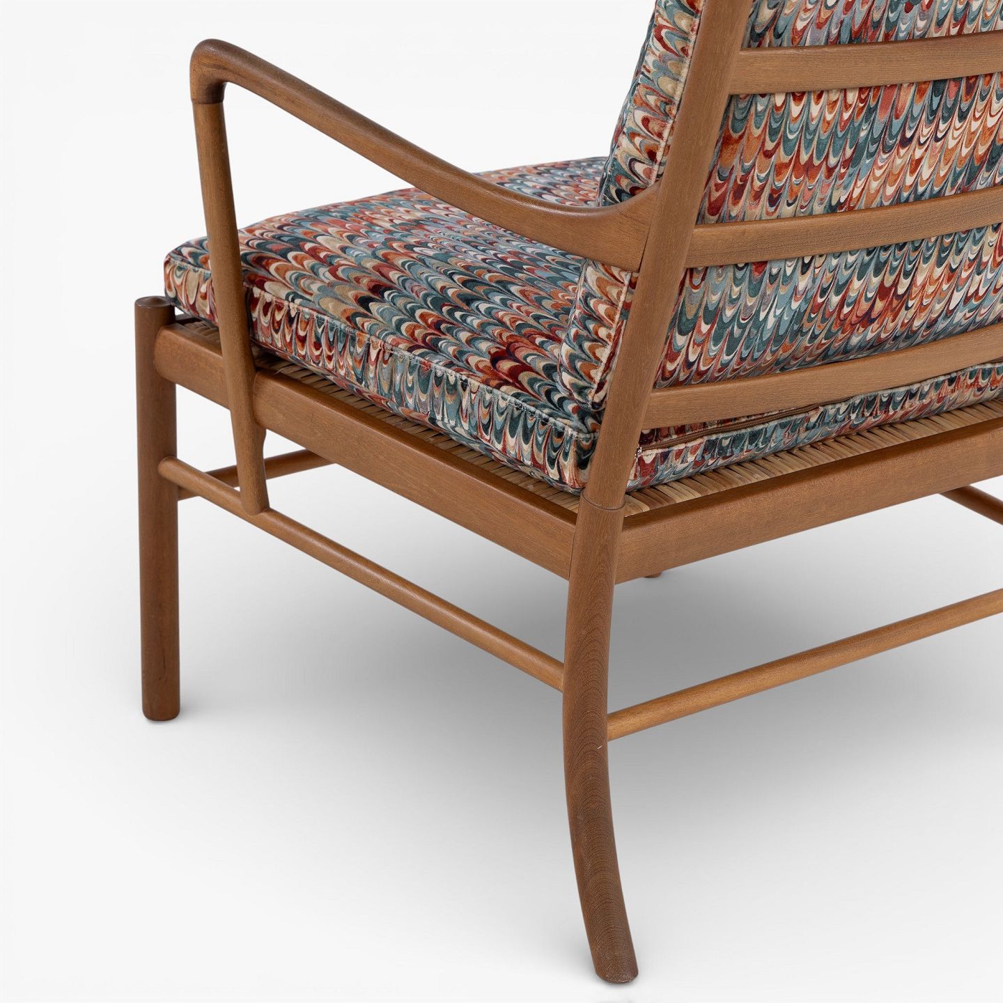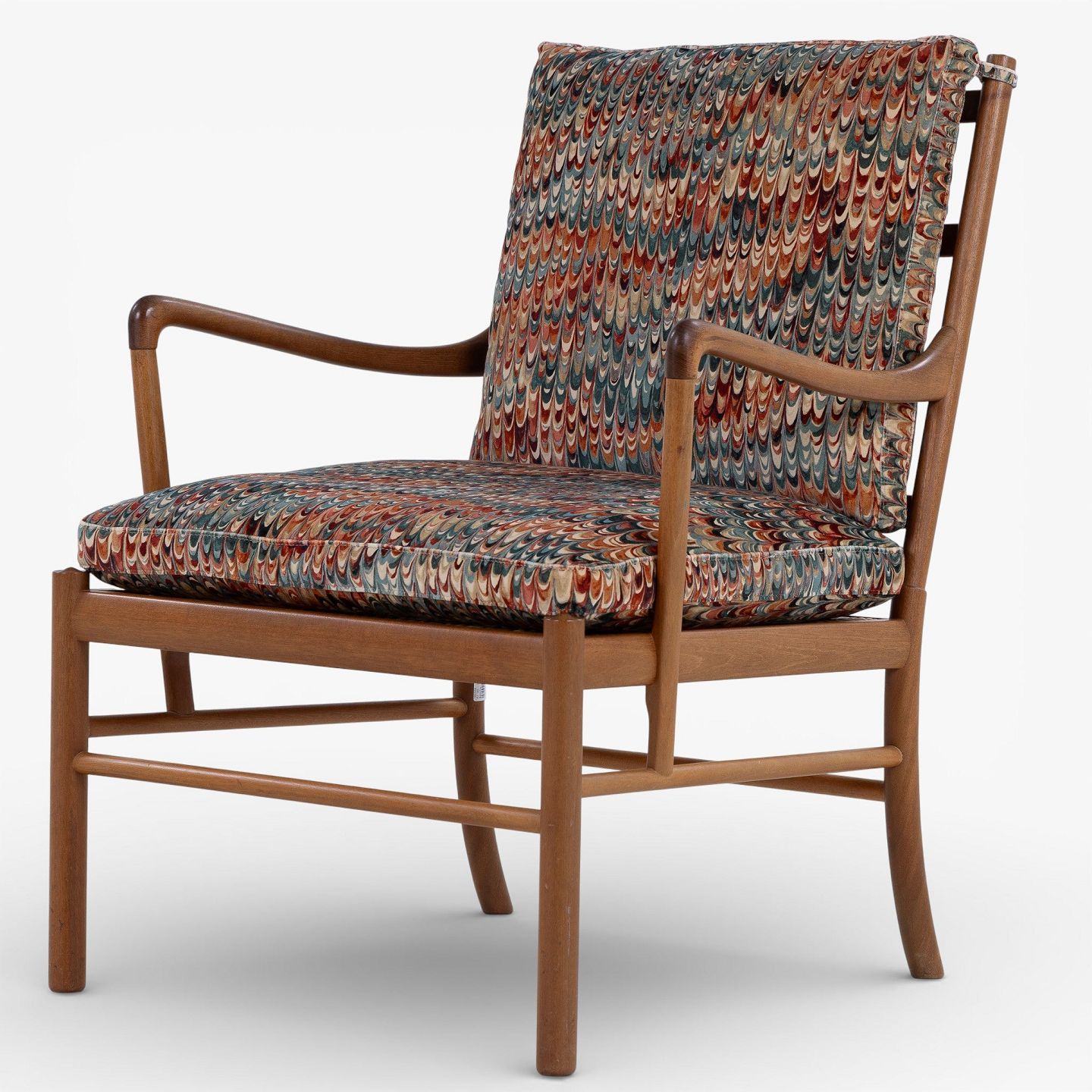 PJ 149 - 'Colonial Chair'-lænestol i patineret mahogni med nybetrukkede hynder i 'End Paper Velvet'-tekstil. Mærket fra producent.